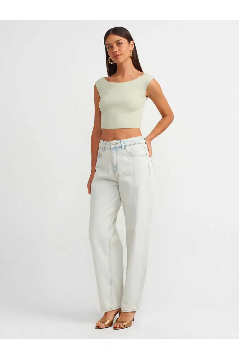 The 71505 Light-Colored Balloon Denim Pants, designed to add style and comfort to your everyday look, is destined to be a staple in your wardrobe. Its light blue color easily complements any outfit, highlighting your style. The balloon cut offers a look that's both stylish and comfortable, while the high waist design makes you appear taller and slimmer.