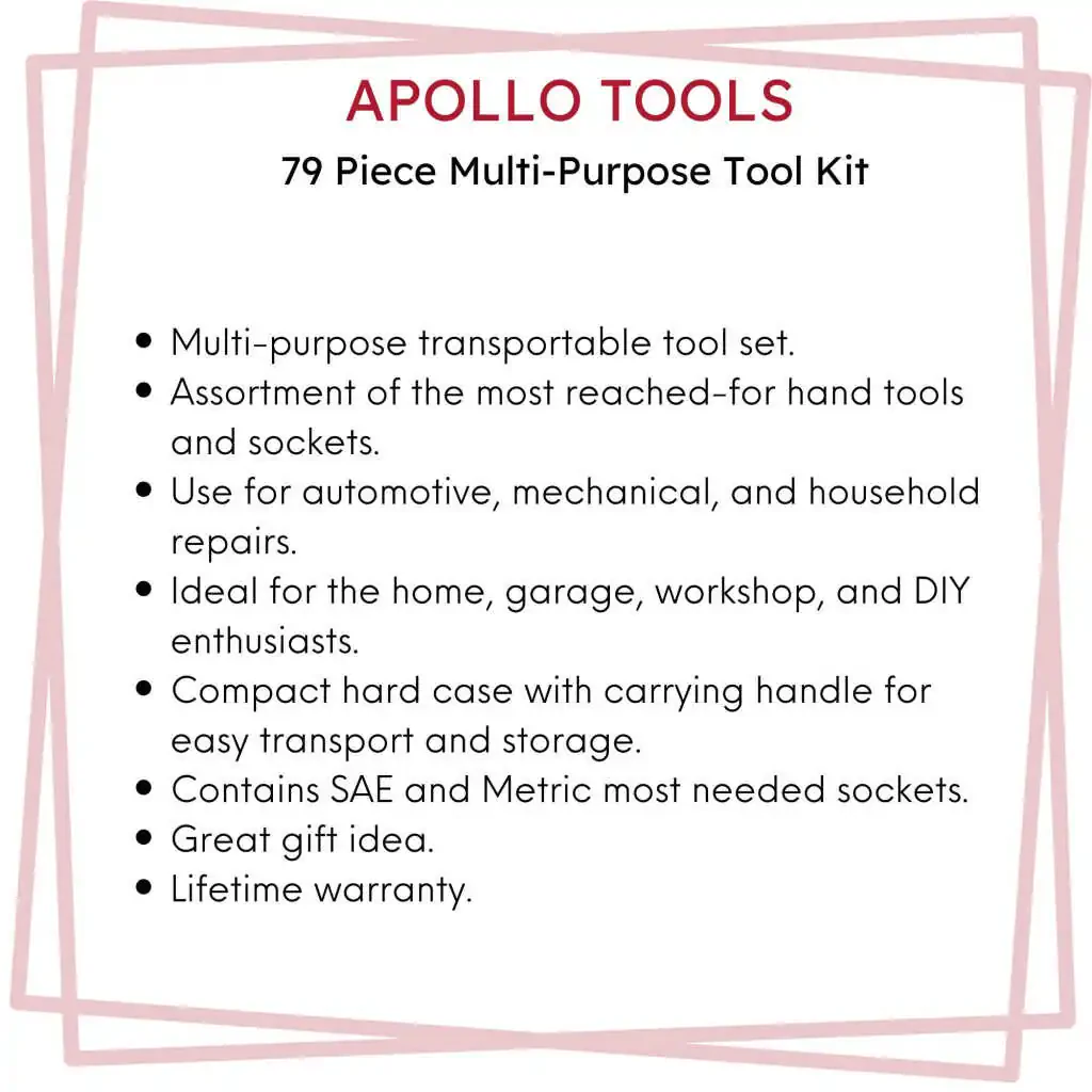 This tool set is ideal for keeping at home, in the garage, in the workshop, or in the vehicle. It contains various tools suitable for different jobs. The tools are made of high-quality materials and are long-lasting. The organized storage box keeps the tools organized and makes them easy to carry.