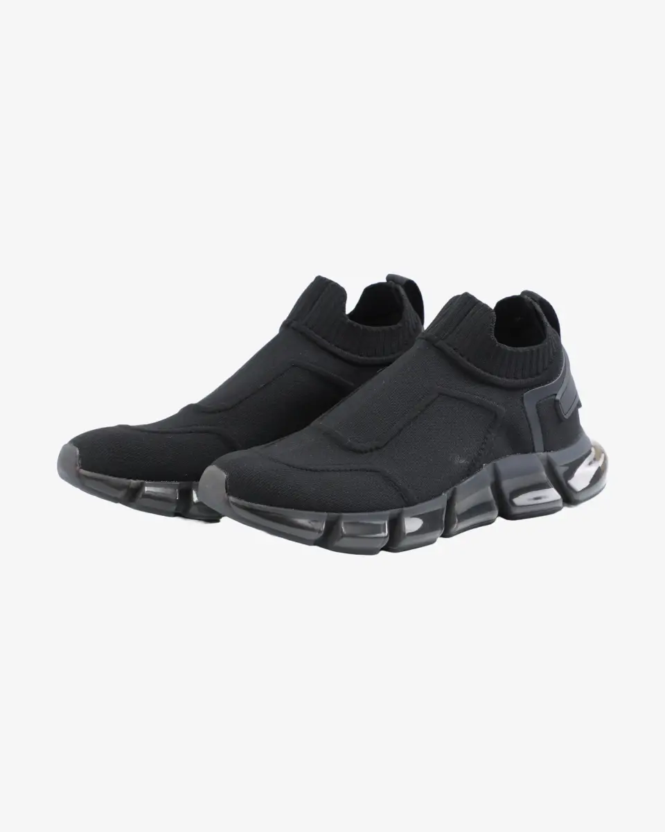 Slip–on sneakers without laces and with elements of forms décor. The anatomical design holds the foot firmly and creates maximum comfort during active loads. Sneakers are perfect for both a sporty and casual looks.Top coat: high-quality knitted textiles Sole: rubber sole with EVA TEP filler Season: Spring – summer
