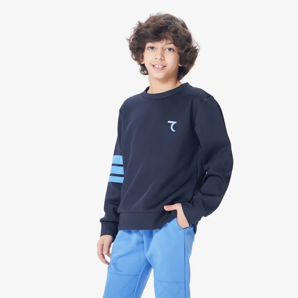 The 7THREE sweatshirt is a modern and stylish wardrobe element that stands out for its unique design and provides comfort for every day.Material: textured smart material; polyester 93%, spandex 7% Design – three horizontal lines on the sleeve Fit: Regular