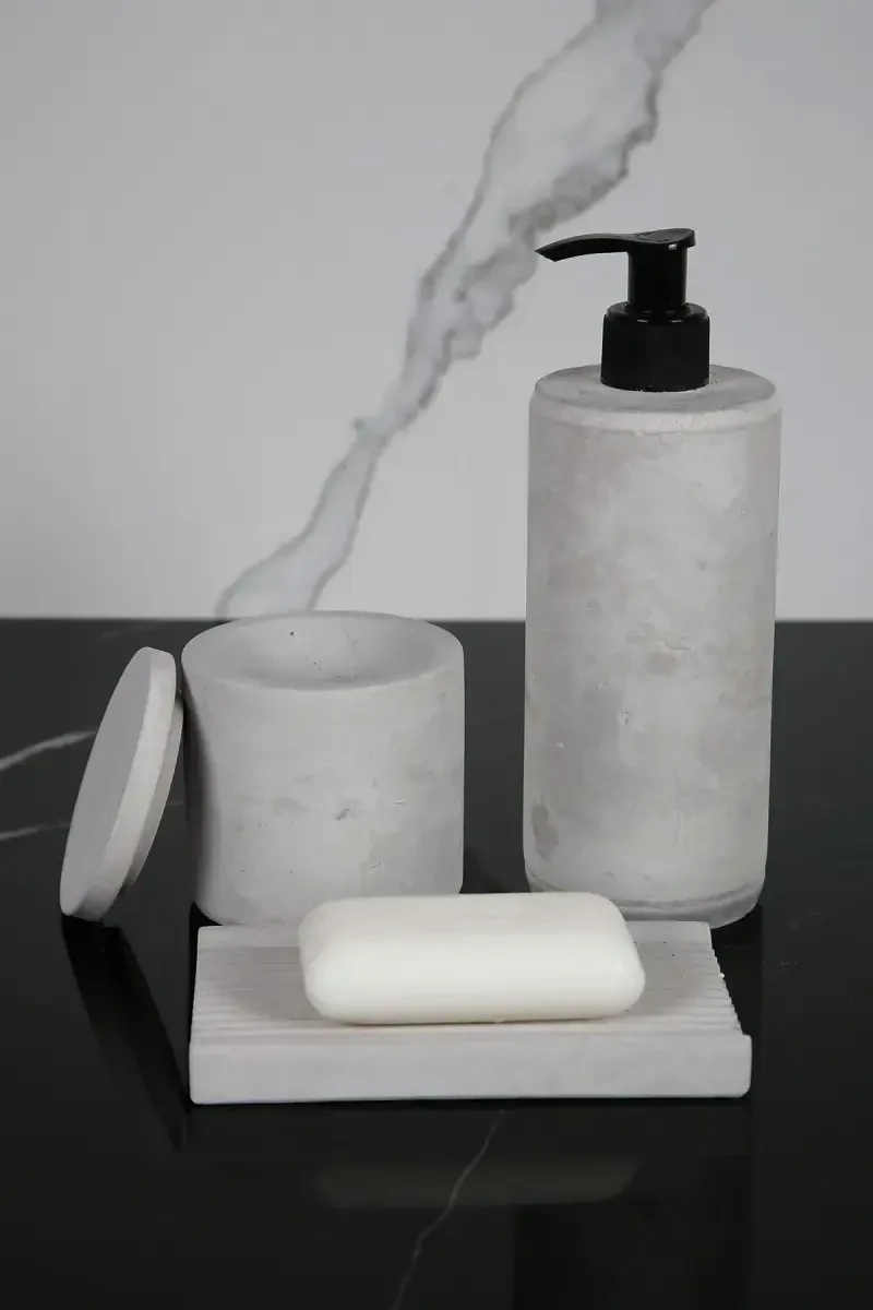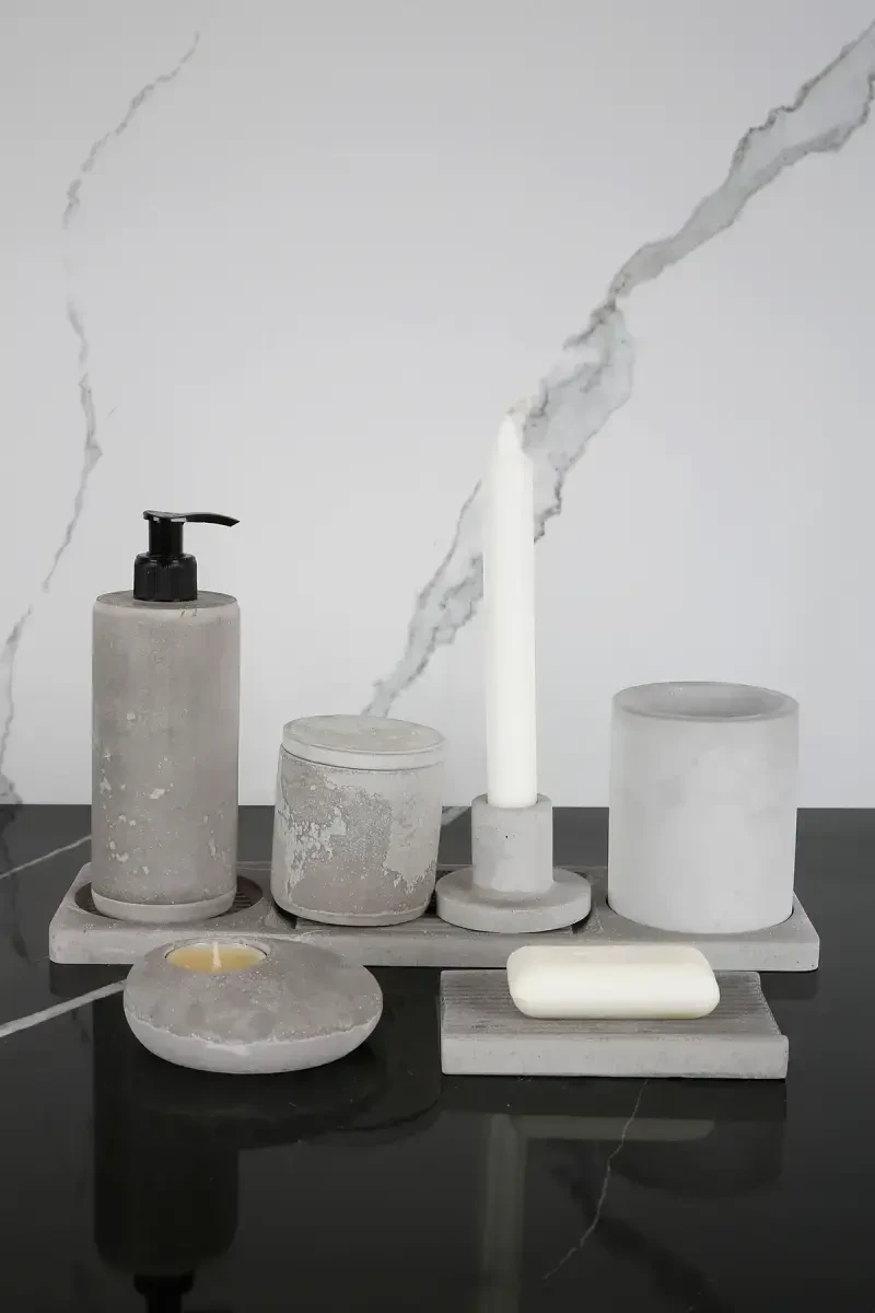 Бетонный банный набор, банный набор, серый банный набор, банный набор из 8 предметов, современный банный набор, стильный банный набор, nenessa, аксессуары для ванной комнаты, бетонная мыльница, органайзер для ванной комнаты