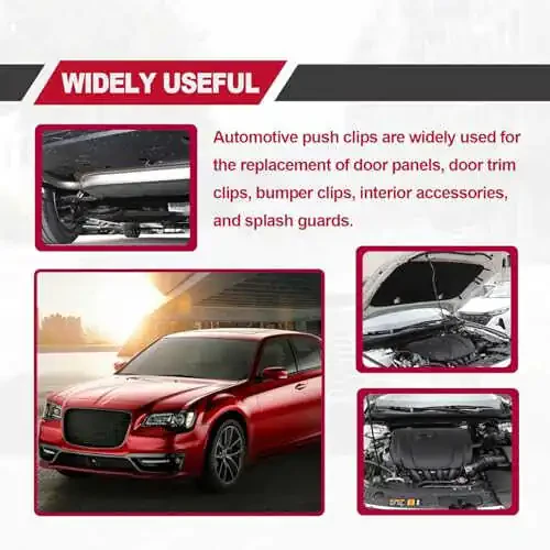 Ushbu yuqori sifatli plastik va po'lat kliplar yillar davomida ishonchli ishlashni ta'minlash uchun mo'ljallangan. Kliplar buzilgan yoki yo'qolgan kliplarni almashtirish va bekatish panellarini o'rnida mustahkam ushlash uchun idealdir.