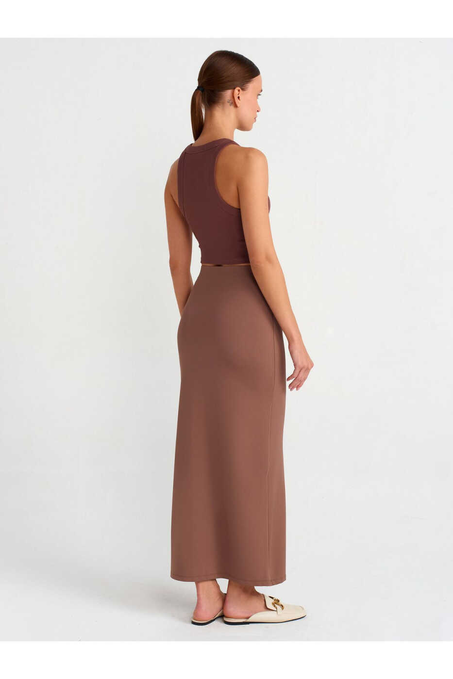 Combining elegance and comfort, the 80354 Midi Pencil Skirt is an indispensable part of your wardrobe. This skirt, in its S. Coffee color, will adapt to any combination and complement your elegance in any environment, from everyday life to special occasions.