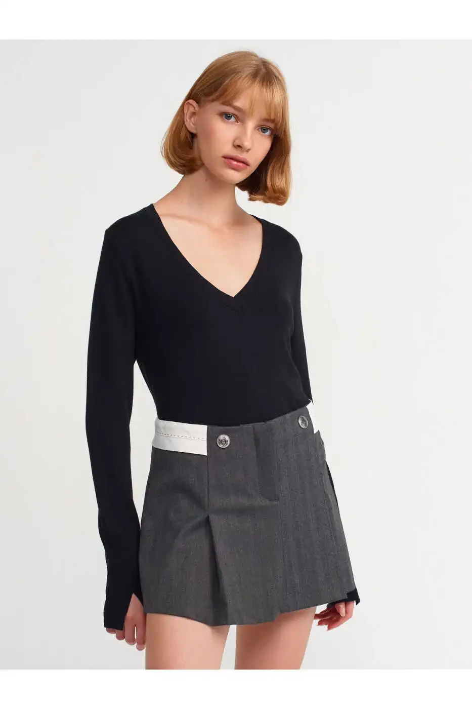 80792 Plitse qilib tikilgan egri kamarli yubkani zamonaviy bluzka, ko'ylak yoki futbolka bilan uyg'unlashtirish orqali ofis, tantanali tadbir yoki kundalik kombinatsiyalar yaratishingiz mumkin. Poyafzal sifatida siz poshnalilar, sport poyafzallari yoki sandaletlarni tanlashingiz mumkin.