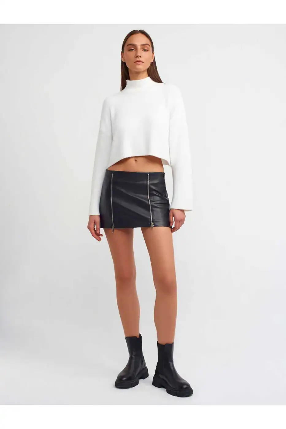 The 80817 Zippered Faux Leather Shorts Skirt, which is compatible with any style with its black color, is an ideal piece to complete your combinations. You can combine it with t-shirts or basic blouses for daily use, with a stylish blouse or high-heeled shoes for special occasions, and achieve a stunning look in every environment.