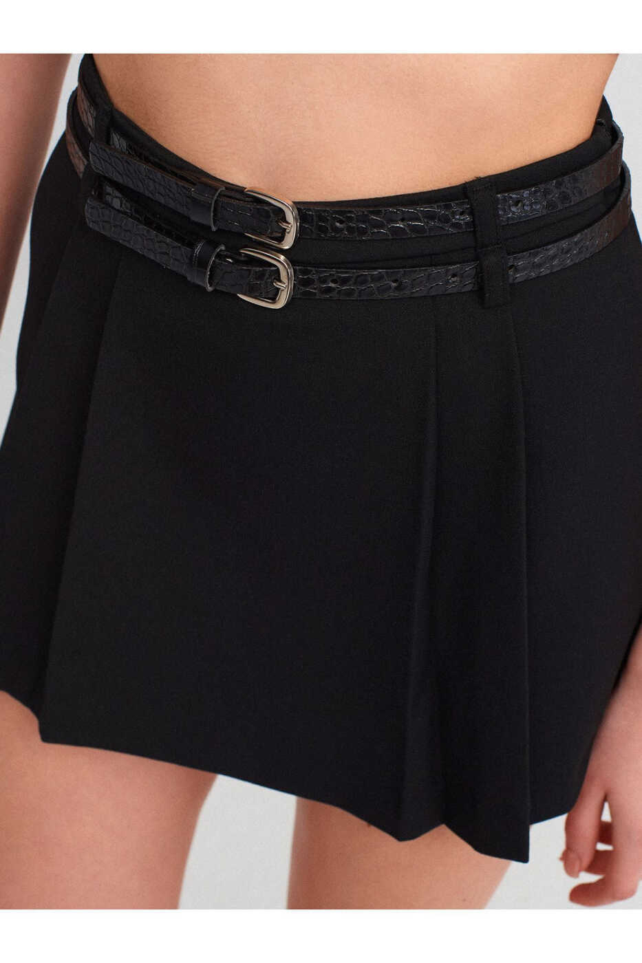 Nozik va zamonaviy ko'rinish uchun 80834 Ikki kamarli shortil yubkani garderobingizga qo'shing. Qora rangi va shortil yubka dizayni har qanday tanaga mukammal mos keladi. Ikki kamar detali sizning uslubingizga o'ziga xos joziba bag'ishlaydi. Yuqori sifatli matodan tikilgan bu yubka kun bo'yi qulaylikni ta'minlaydi. Kundalik hayotdan kechki tadbirlarga qadar har qanday muhitda qulaylik bilan kiyishingiz mumkin.