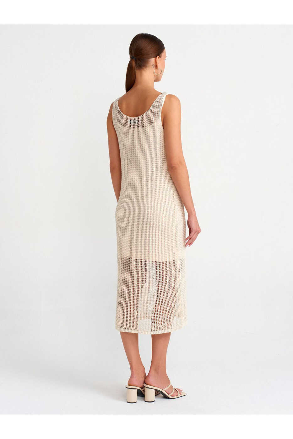 Combining style and comfort, the 90206 Strapless Lace-Trimmed Lined Knit Dress will be an indispensable piece in your wardrobe. With its thin straps and lace trim, the dress exudes a feminine vibe, while its lining ensures comfortable wear throughout the day. The ecru color makes the dress adaptable to any combination, making it a perfect choice for everyday wear or special occasions.