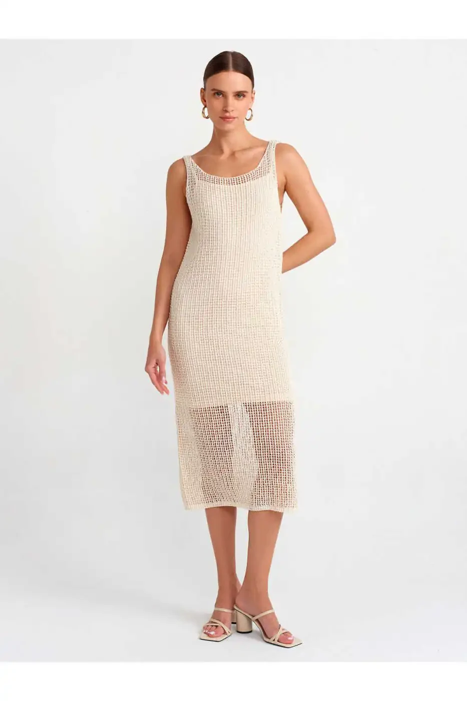 Uslub va qulaylikni birlashtirgan 90206 Yelkali Ajurli Astarli Triko Ko'ylak sizning garderobingizning ajralmas qismi bo'ladi. Yupqa yelkalari va ajurli tuzilishi bilan ayollarcha ko'rinish beruvchi ko'ylak, shuningdek, astari tufayli kun bo'yi qulay foydalanish imkonini beradi. Ekru rangi har qanday kombinatsiyaga mos keladigan ko'ylakni kundalik hayotda yoki maxsus kunlarda bemalol tanlashingiz mumkin.