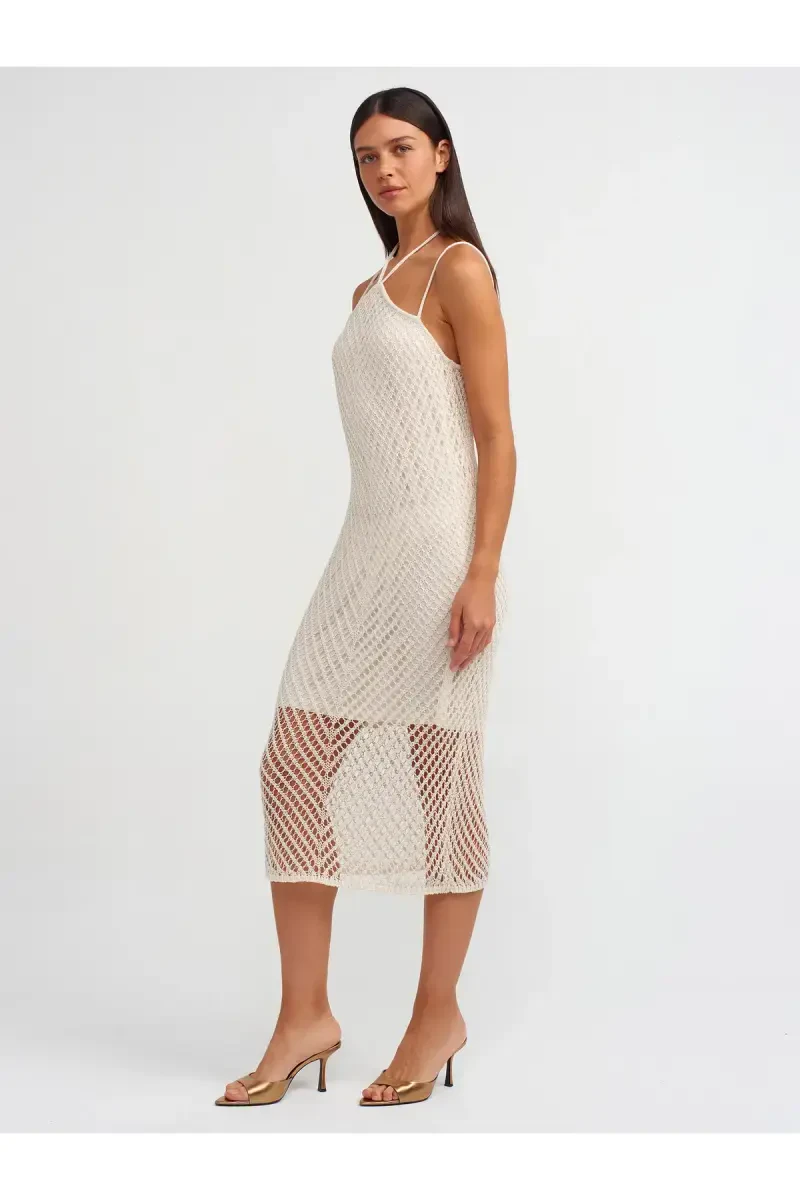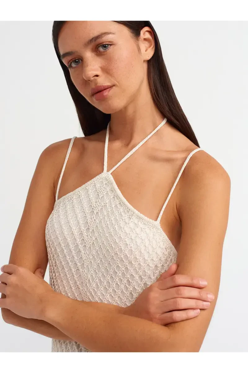 90207 Knitted Dress with Straps and Openwork, is a stylish and comfortable option that will be indispensable for summer months. This knitted dress, which highlights elegance with its ecru color, offers a modern and elegant look thanks to its openwork knit pattern. Its strap design provides a cool and airy use in hot weather, while its knitted texture helps you feel comfortable all day long. Ideal for both daily use and special occasions, this dress is a candidate to be one of the most loved pieces of your wardrobe.Product Description90207 Knitted Dress with Straps and Openwork is an elegant and comfortable option that is a candidate to be indispensable for your summer wardrobe. This special design offers a unique style by combining the calm and sophisticated stance of ecru color with the modern and eye-catching texture of openwork knit details. While its strap design provides a cool and comfortable use even on hot summer days, the softness of the knitted fabric guarantees your comfort all day long. This dress not only makes you look stylish, but also makes you feel good. You can easily adapt it to any environment by combining it with the right accessories, whether it is for a coffee meeting with your friends during the day or for a special dinner in the evening. The light and flowing structure of the dress does not restrict your freedom of movement and allows you to feel comfortable all day long. The openwork knit pattern adds a different dimension to the dress, while the ecru color adapts to all skin tones, helping you achieve a perfect look. 90207 Knitted Dress with Straps and Openwork is not just a piece of clothing, but also a piece that reflects your style and makes you feel special. This dress, which deserves to be in the most valuable corner of your wardrobe, offers your elegance and comfort together throughout the summer. This knitted dress, every detail of which has been carefully thought out, is a candidate to take its place in your wardrobe for many years with its quality material and perfect workmanship. Whether you create a casual chic look with sandals or a more special look with heels, this dress will complement your style and make you stand out in any situation. 90207 Knitted Dress with Straps and Openwork is the perfect choice for women who want to reflect the energy and lightness of summer while not sacrificing their elegance.Product Features* Ecru color* Strappy design* Openwork knit detail* Knitted fabric* Comfortable and stylishAdditional InformationThe size on the model is S/36. Product content is 100% Acrylic. Machine washable in cold water. It is recommended to dry by laying.