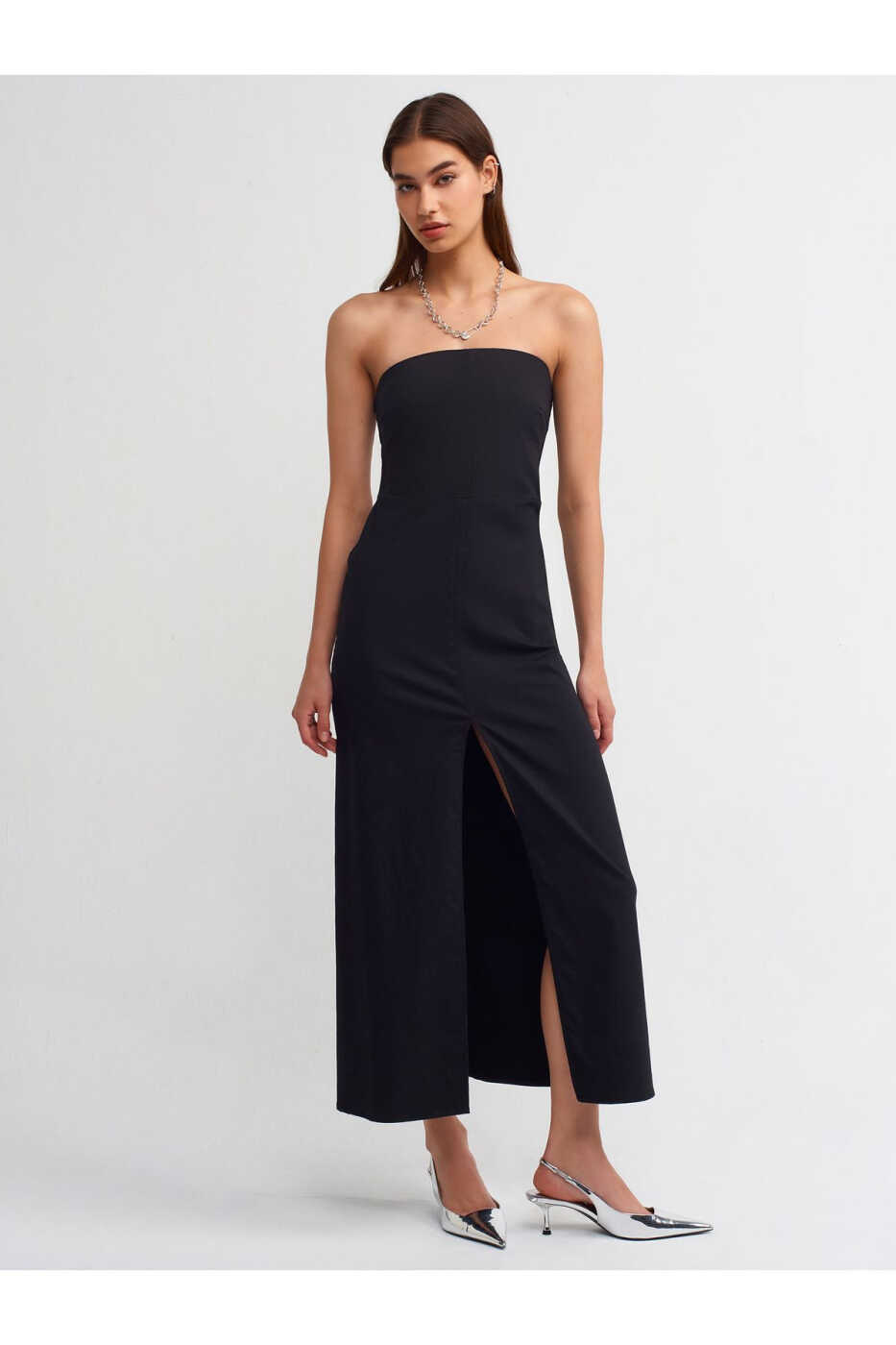 Идеально подходящее для изящного и стильного образа, платье без бретелек 90758 с разрезом станет незаменимой частью вашего гардероба. Платье, которое предлагает потрясающую элегантность своим черным цветом и дизайном без бретелек, обеспечивает комфортное ношение благодаря высококачественной ткани. Высокая талия подчеркивает вашу стройность, а деталь с разрезом обеспечивает свободу движений.