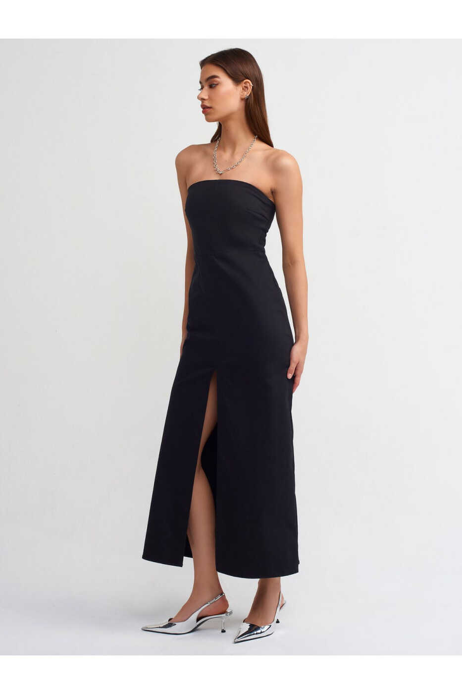 90758 Платье без бретелек с разрезом - Черный - Для стильного и элегантного образа