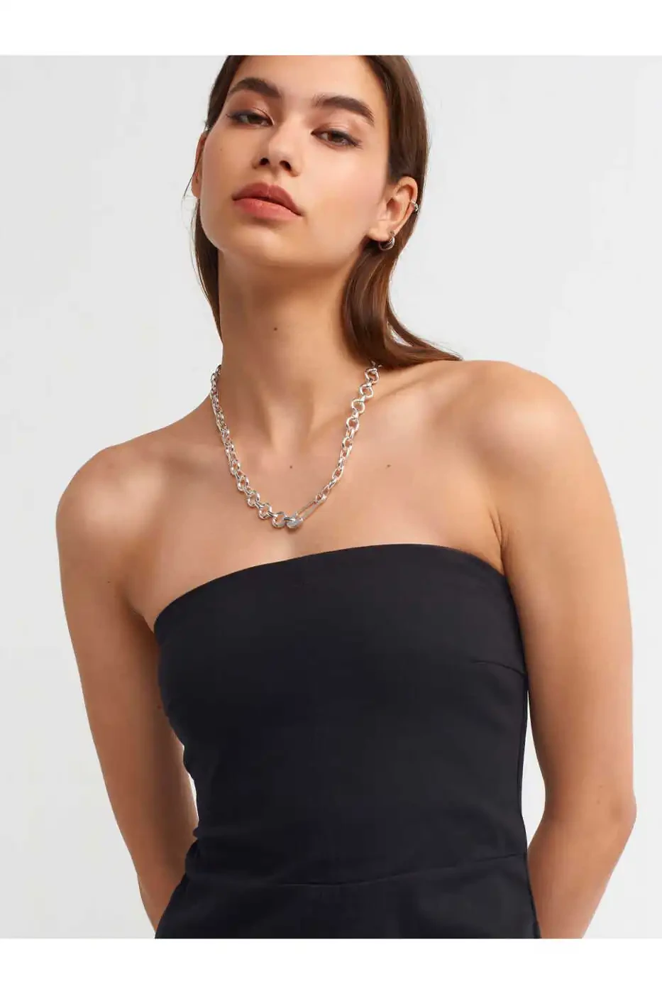 Ideal for a graceful and stylish look, the 90758 Strapless Dress with Slit will be an indispensable part of your wardrobe. The dress, which offers a stunning elegance with its black color and strapless design, provides a comfortable wearing experience thanks to its high-quality fabric. The high-waisted cut accentuates your slenderness, while the slit detail gives you freedom of movement.