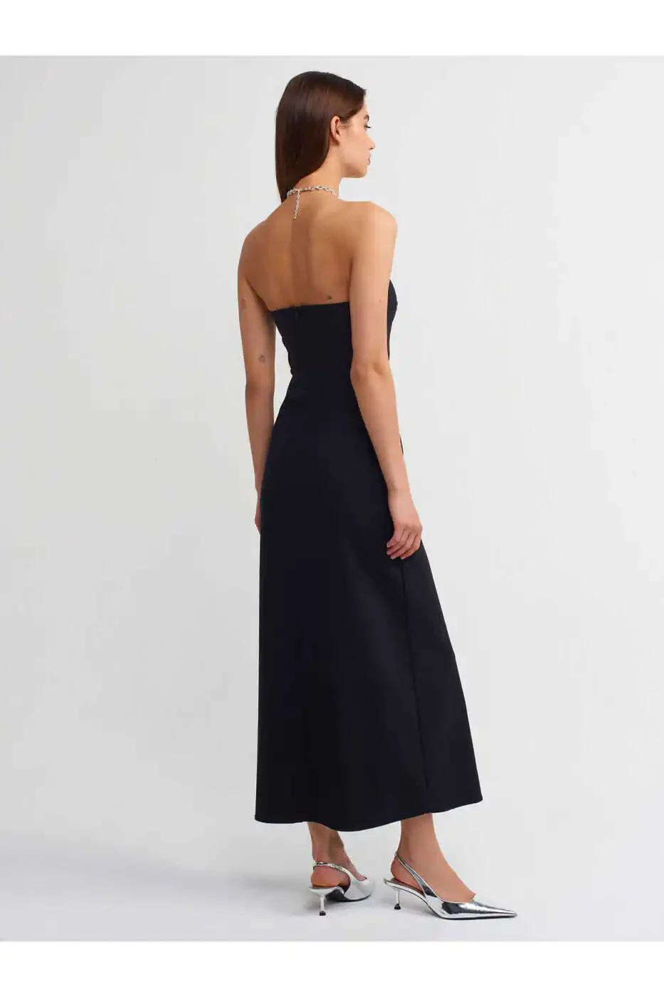 Nafis va zamonaviy ko'rinish uchun ideal bo'lgan 90758 Yirtiqsiz Straplez Ko'ylak, shkafingizning ajralmas qismi bo'ladi. Qora rangi va straplez dizayni bilan jozibali nafislikni taqdim etadigan ko'ylak, yuqori sifatli matodan tufayli qulay foydalanish tajribasini taqdim etadi. Yuqori bel kesimi sizning nozikligingizni ta'kidlab, yirtiq detali sizga harakat erkinligini beradi.