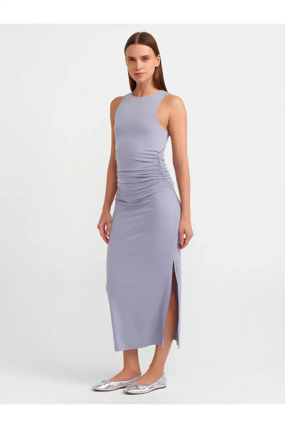 Stil va qulaylikni birlashtirgan 90861 Yirtiq detallari bilan uzun ko'ylak, garderobingizning ajralmas qismiga aylanishiga tayyor. Kulrang rangi har qanday uslubga mos keladi, nafis yirtiq detallari esa ayollikni qo'shadi.