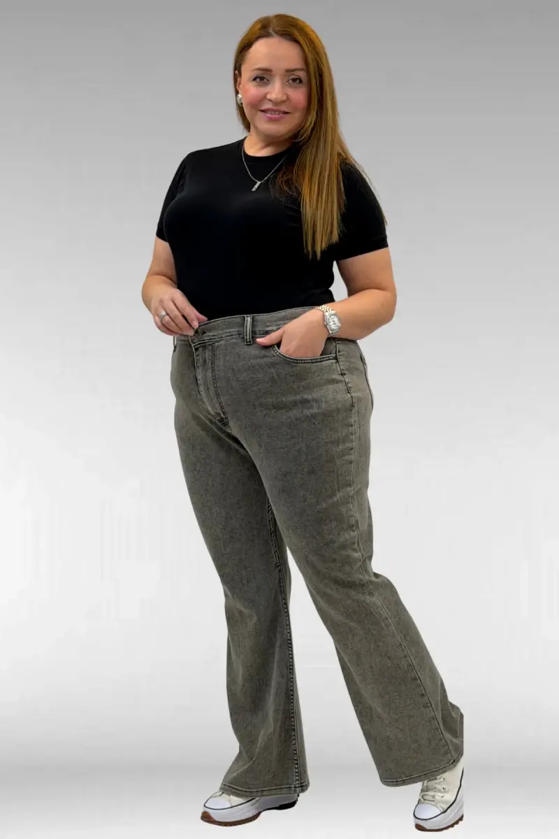 9110-11 Büyük Beden İspanyol Paça Kot Pantolon - Antrasit