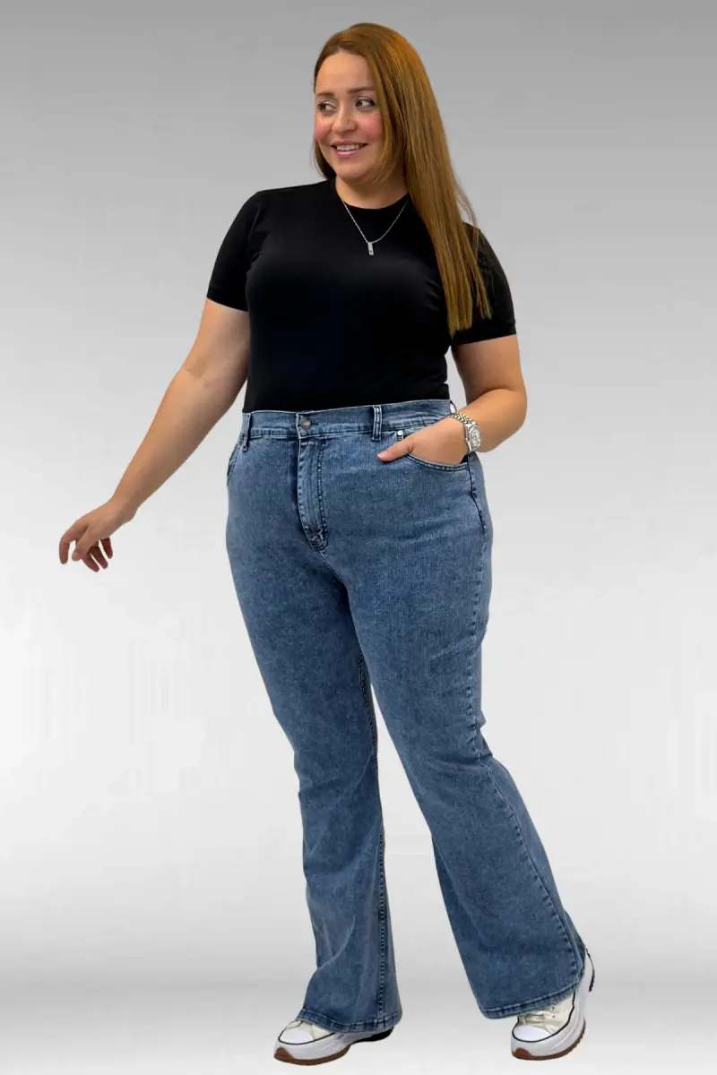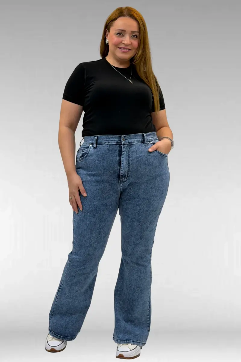 9110-11 Büyük Beden İspanyol Paça Kot Pantolon - Mavi