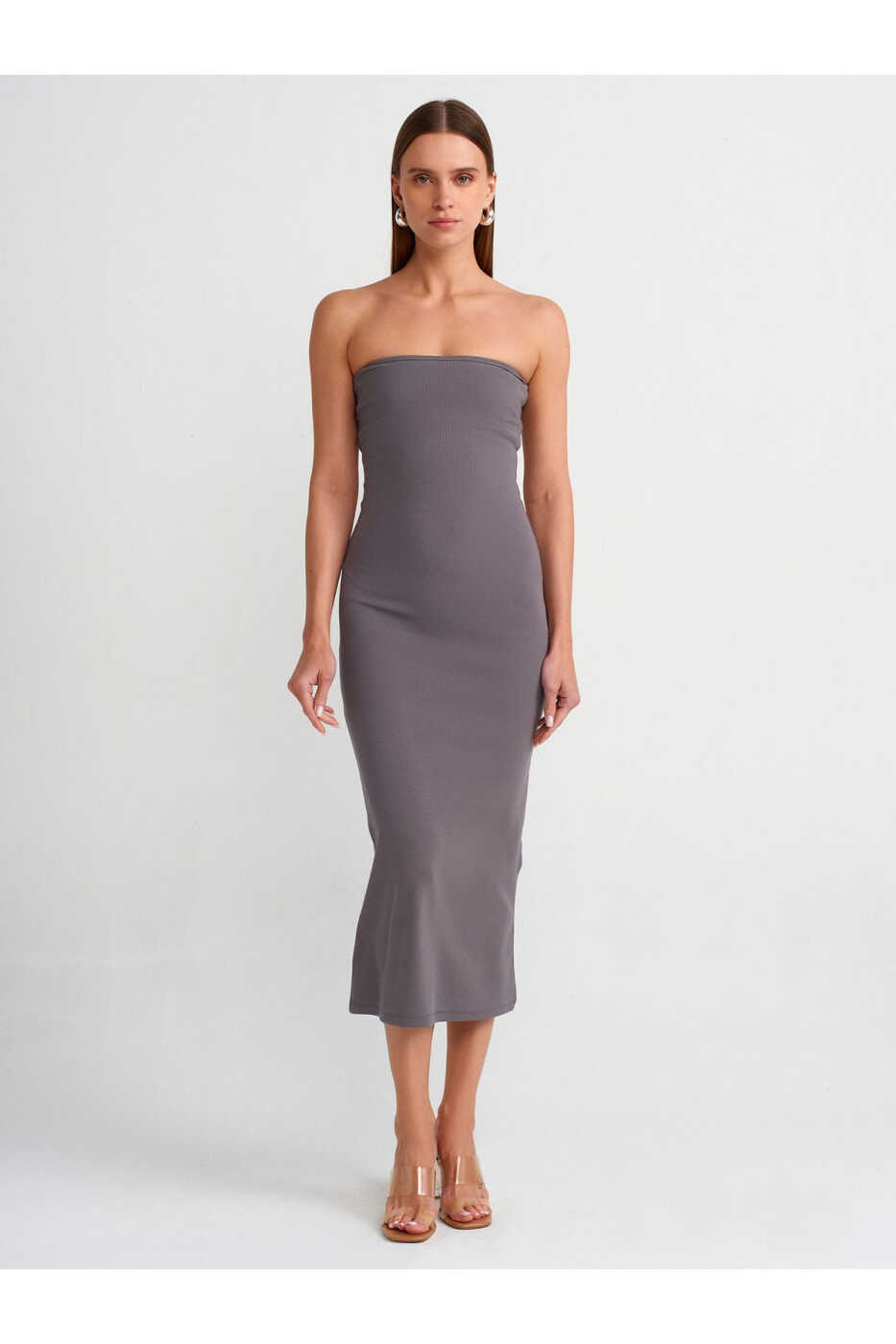 91100 Straplez Midi Ko'ylak - Tutun | Zamonaviy va Qulay Ko'ylak