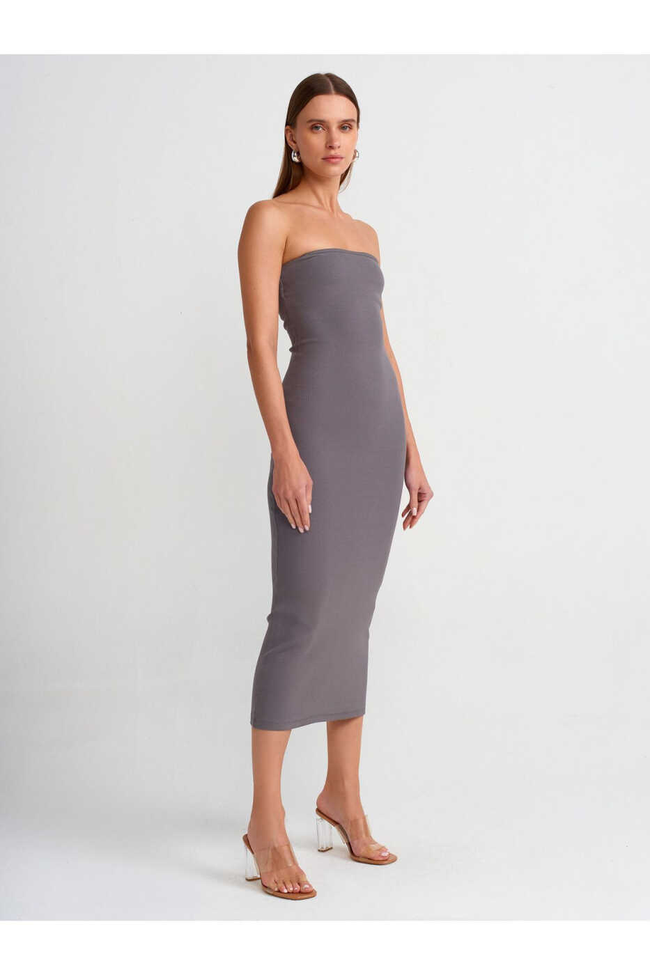 The 91000 Strapless Midi Dress combines style and comfort, making it an indispensable piece for your wardrobe. Its smoke color complements every style, while its strapless design offers a feminine look. The midi length perfectly flatters every body type, making the dress ideal for everyday wear.