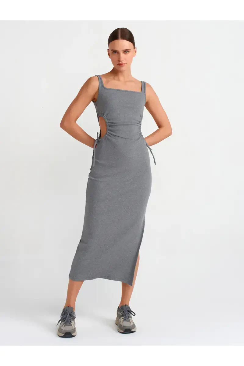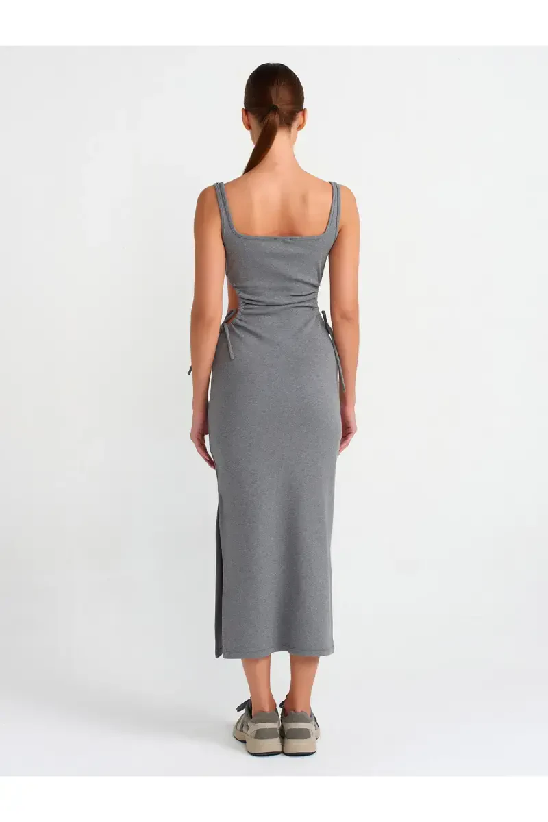 91106 Window Detailed Long Dress-Anthracite-Anthracite