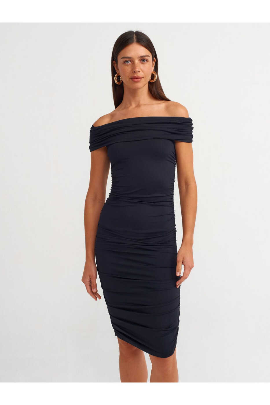91153 Платье с открытыми плечами и оборками - Черный | Стильный и элегантный образ