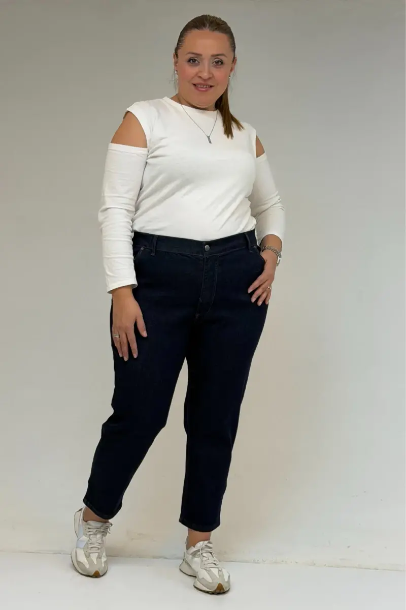 Gardırobunuzun vazgeçilmezi olacak 9125-6 Büyük Beden Boy Friend Kot Pantolon ile tanışın! Koyu lacivert rengi ve rahat kesimiyle her tarza uyum sağlayan bu pantolon, gün boyu konforunuzu ön planda tutar. Yüksek kaliteli denim kumaşı sayesinde uzun ömürlü kullanım sunarken, pamuk ve likra karışımıyla da hareket özgürlüğünüzü kısıtlamaz. İster günlük kombinlerinizde, ister özel anlarınızda şıklığınızı tamamlayacak bu pantolon, büyük beden kadınların beklentilerini karşılamak üzere tasarlandı. Boy friend kesimi, hem modern hem de rahat bir görünüm sunarken, koyu lacivert rengi de her türlü üst giyimle kolayca kombinlenebilir. Ofiste şık bir bluzla, hafta sonu ise spor bir tişörtle rahatlıkla kullanabileceğiniz bu pantolon, her mevsim giyilebilme özelliğiyle de gardırobunuzun joker parçası olacak. 9125-6 Büyük Beden Boy Friend Kot Pantolon, sadece şık değil, aynı zamanda kullanışlı bir seçimdir. Cep detayları sayesinde günlük eşyalarınızı yanınızda taşımanızı kolaylaştırırken, dayanıklı kumaşı da uzun süreli kullanım imkanı sunar. Kendi bedeninize uygun ölçüyü seçerek, üzerinize tam oturan ve sizi olduğunuzdan daha iyi gösteren bu pantolonla, her ortamda özgüvenle parlayacaksınız. Modelimizin üzerindeki duruşu ve rengi hakkında fikir edinmek için konsept çekimlerimizi inceleyebilirsiniz; ancak ışık ve ortam farklılıklarından dolayı renk tonunda ufak farklılıklar olabileceğini unutmayın. Büyük beden giyimde konfor ve şıklığı bir araya getiren 9125-6, her kadının sahip olması gereken bir parça. Şimdi sipariş verin ve stilinizi bir adım öteye taşıyın!