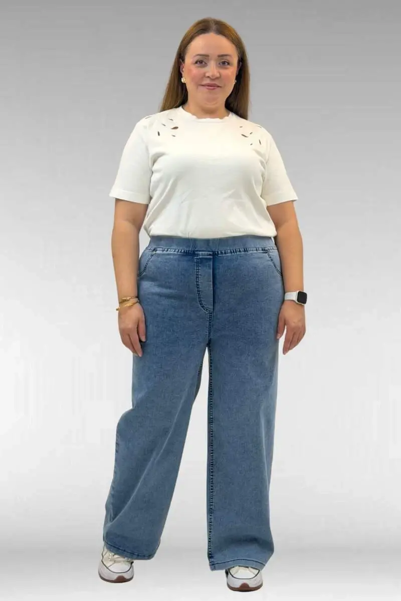 9182-10 Büyük Beden Bolpaça Beli Lastikli Kot Pantolon - Kar Yıkama Mavi
