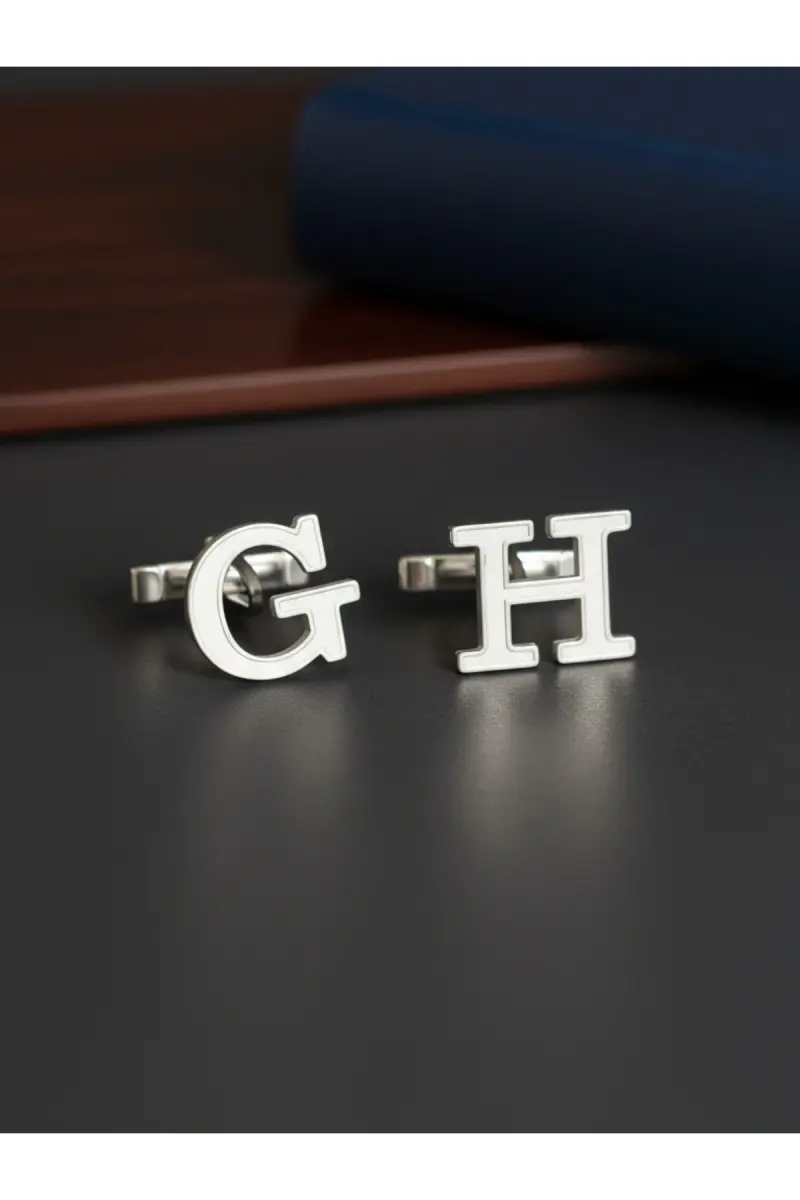 925 Ayar Gümüş Harfli Kol Düğmesi Damat Hediyesi Kişiye Özel-Tek Harf