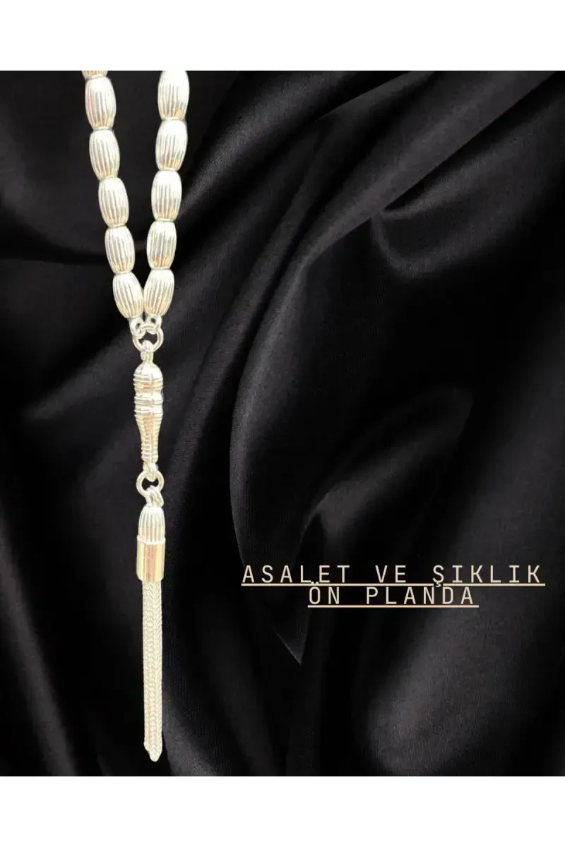 Nozik va zamonaviy dizaynga ega bo'lgan 925 probali kumush arpa kesim dizaynli tasbeh, ham o'zingizga, ham yaqinlaringizga maxsus sovg'a tanlovi hisoblanadi. An'anaviy tasbeh madaniyatiga zamonaviy ohang bag'ishlaydigan bu tasbeh, nozik hunarmandchiligi va jozibali ko'rinishi bilan diqqatni tortadi. Arpa kesimli kumush munchoqlar, har birining nozik tarzda aks ettirishiga imkon berib, tasbehga noyob estetiklik baxsh etadi.