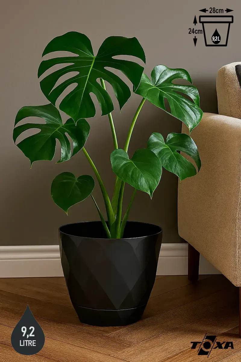 Bitkilerinize hak ettiği değeri verin ve yaşam alanlarınıza şıklık katın! 9.2 Litre hacimli, Ø27.5cm ağız çapına ve 24cm yüksekliğe sahip olan Baklava Desenli Tabaklı Büyük Boy Dekoratif Plastik Saksı Yakamoz No5 Antrasit, bitkileriniz için ideal bir yuva olmanın yanı sıra, modern ve zarif tasarımıyla da göz kamaştırıyor. Antrasit renginin asil duruşu, baklava deseniyle birleşerek saksıya benzersiz bir görünüm kazandırıyor. Bu özel tasarım saksı, iç ve dış mekanlarda kullanıma uygun olup, her türlü dekorasyona kolayca uyum sağlayarak mekanlarınıza sofistike bir hava katıyor.Yakamoz No5 saksı, sadece estetik görünümüyle değil, aynı zamanda dayanıklılığı ve kullanışlılığıyla da öne çıkıyor. UV katkılı özel plastik malzemeden üretilmiş olması, güneş ışınlarına karşı yüksek direnç göstererek renginin solmasını ve yapısının bozulmasını engelliyor. Böylece, uzun yıllar boyunca ilk günkü görünümünü koruyarak size eşlik ediyor. Geri dönüştürülebilir hammaddeden üretilmiş olması ise çevreye duyarlı bir seçim yapmanızı sağlıyor.Hafif yapısı sayesinde kolayca taşınabilir olan Yakamoz No5 saksı, bitkilerinizi istediğiniz yere rahatlıkla yerleştirmenize olanak tanıyor. Özellikle büyük bitkiler için ideal olan bu saksı, bitkilerinizin sağlıklı bir şekilde büyümesi ve gelişmesi için gerekli olan ideal ortamı sunuyor. Tabaklı tasarımı sayesinde sulama sırasında fazla suyun dışarı akmasını engelleyerek zeminlerinizi korur ve bitkilerinizin köklerinin çürümesini önler.Yakamoz No5 Antrasit saksı, sadece bir saksı değil, aynı zamanda bir dekorasyon öğesidir. Evinizde, bahçenizde, balkonunuzda veya terasınızda kullanabileceğiniz bu şık saksı, bitkilerinizin güzelliğini ön plana çıkararak yaşam alanlarınıza canlılık ve renk katıyor. Modern tasarımı, dayanıklılığı, kullanışlılığı ve çevreye duyarlı yapısıyla Yakamoz No5 Antrasit saksı, bitkiseverler için vazgeçilmez bir seçenek olacaktır. Bitkilerinizi bu özel saksıda yetiştirerek hem onların sağlığını koruyun hem de yaşam alanlarınıza estetik bir dokunuş katın.