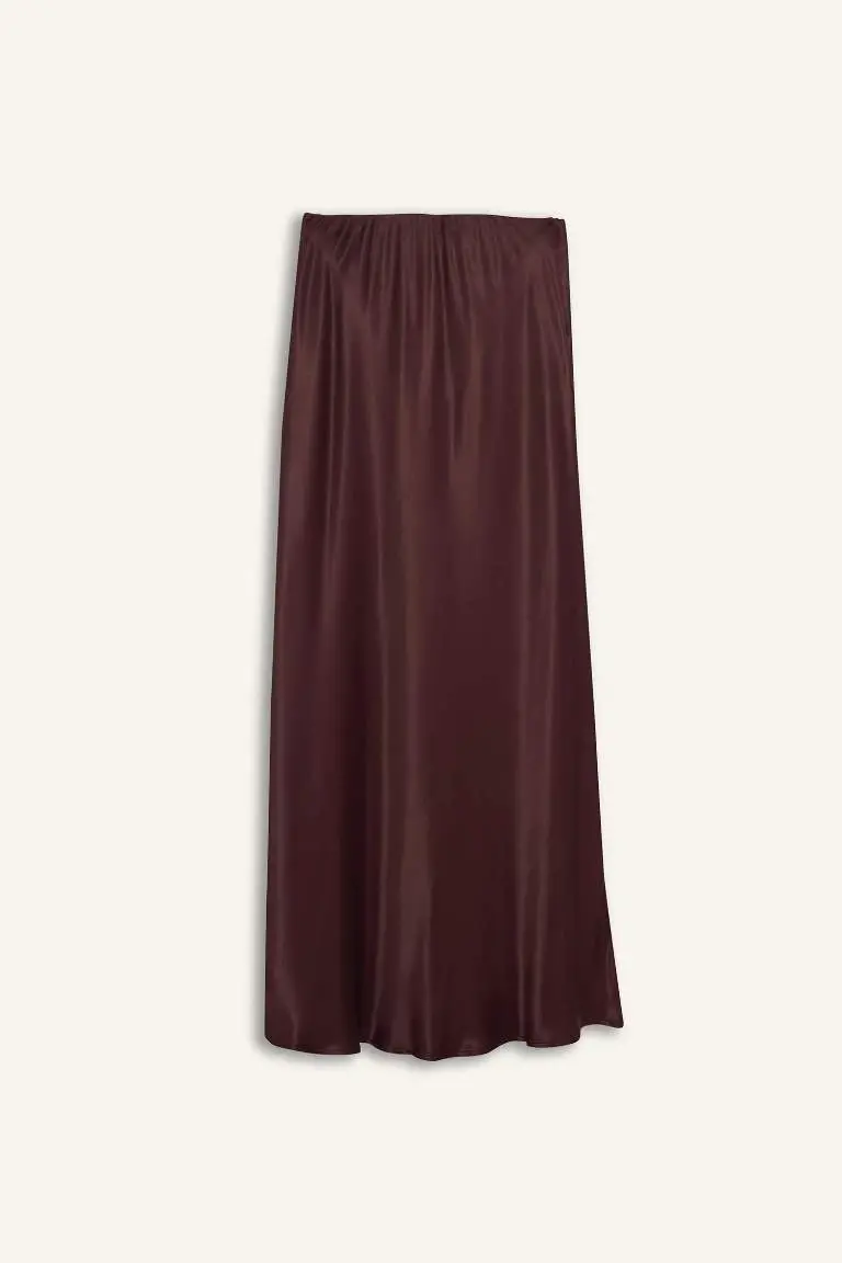 Bordo Saten Midi Yubka | A Kesimli Chiroyli Yubka