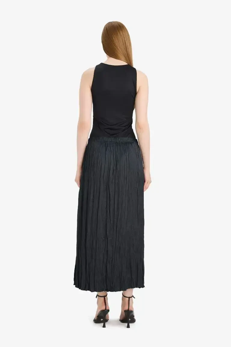 А-силуэтная атласная макси-юбка - черная, станет незаменимой вещью в вашем гардеробе, предлагая вневременную элегантность. Эта юбка, которая подчеркнет вашу элегантность в любой обстановке, от особых случаев до повседневного ношения, привлекает внимание своей роскошной текстурой атласной ткани и приятным для тела А-силуэтом. Блестящая атласная ткань ослепляет легким блеском при каждом движении, а А-силуэт элегантно подчеркивает ваши женственные формы. Макси-длина позволяет добиться как современного, так и изысканного вида. Благородный и легко сочетаемый черный цвет позволяет идеально сочетаться с верхней одеждой разных цветов и стилей. Независимо от того, посещаете ли вы особое мероприятие в элегантной блузке и туфлях на каблуках или стремитесь к повседневной элегантности с удобным свитером и балетками, атласная макси-юбка А-силуэта дополнит ваш стиль в любой ситуации. Эта юбка, изготовленная из прочных материалов в соответствии с качеством Defacto, рассчитана на длительный срок службы. Содержание ткани 100% полиэстер обеспечивает легкую глажку и устойчивость к складкам. Тот факт, что он произведен в Турции, поддерживает местную рабочую силу и гарантирует соответствие высоким стандартам качества. Эта юбка, также подходящая для скромной одежды, понравится женщинам, которые придерживаются как современного, так и консервативного стиля одежды. Атласная макси-юбка А-силуэта - это не просто юбка, это еще и выражение стиля. Это вещь, которую обязательно нужно иметь в своем гардеробе, чтобы чувствовать себя особенной и быть в центре внимания своей элегантностью в любой обстановке. Вы можете примерить эту юбку дома, чтобы проверить, подходит ли она вам по размеру, и, если размер не подходит, вы можете бесплатно обменять ее в нашем магазине (за исключением чулок, нижнего белья и украшений). Наслаждайтесь стилем всегда и везде с атласной макси-юбкой А-силуэта, сочетающей в себе элегантность и комфорт.