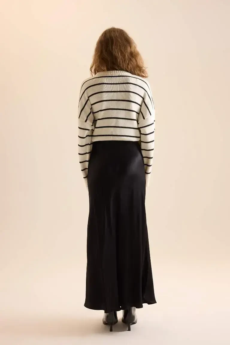 А-силуэтная атласная юбка макси с нормальной талией — это идеальное сочетание элегантного и современного стиля. Высококачественная атласная ткань придает юбке роскошный вид, а ее струящаяся структура добавляет гармонии вашим движениям. А-образный силуэт изящно подчеркивает линии вашей фигуры и подходит для любой фигуры. Нормальный дизайн талии обеспечивает комфорт в течение всего дня и не позволяет вам жертвовать своим стилем. Эта юбка — универсальная вещь, которую можно легко использовать как для дневных, так и для вечерних образов. Вы можете создать профессиональный образ, сочетая ее с элегантной блузкой и туфлями на каблуках в офисе, или создать изысканный стиль, сочетая ее с кружевным топом и элегантными украшениями на ужин. Благородный вид черного цвета легко сочетается со всеми цветами и узорами, поэтому его можно легко сочетать с другими предметами вашего гардероба. Длинная и струящаяся форма юбки придает вам уверенный и элегантный вид, а удобный крой позволяет вам чувствовать себя комфортно в течение всего дня. Блеск атласной ткани позволяет вам привлекать внимание в любой обстановке, а качественное изготовление обеспечивает долговечность. Эта юбка станет одной из основных вещей в вашем гардеробе и станет вневременным дизайном, который вы сможете использовать в разных сочетаниях в любое время года. Независимо от того, создаете ли вы повседневный стиль со спортивной футболкой и сандалиями или готовитесь к особому мероприятию с элегантной блузкой и туфлями на шпильке, эта юбка будет сопровождать вас в любом случае. А-силуэтная атласная юбка макси с нормальной талией — это не просто юбка, это предмет, который отражает ваш стиль и придает вам уверенность.