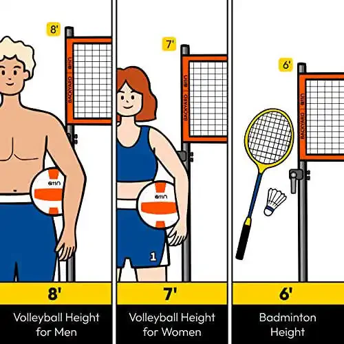 - Предоставляет все необходимое для игры как в волейбол, так и в бадминтон.