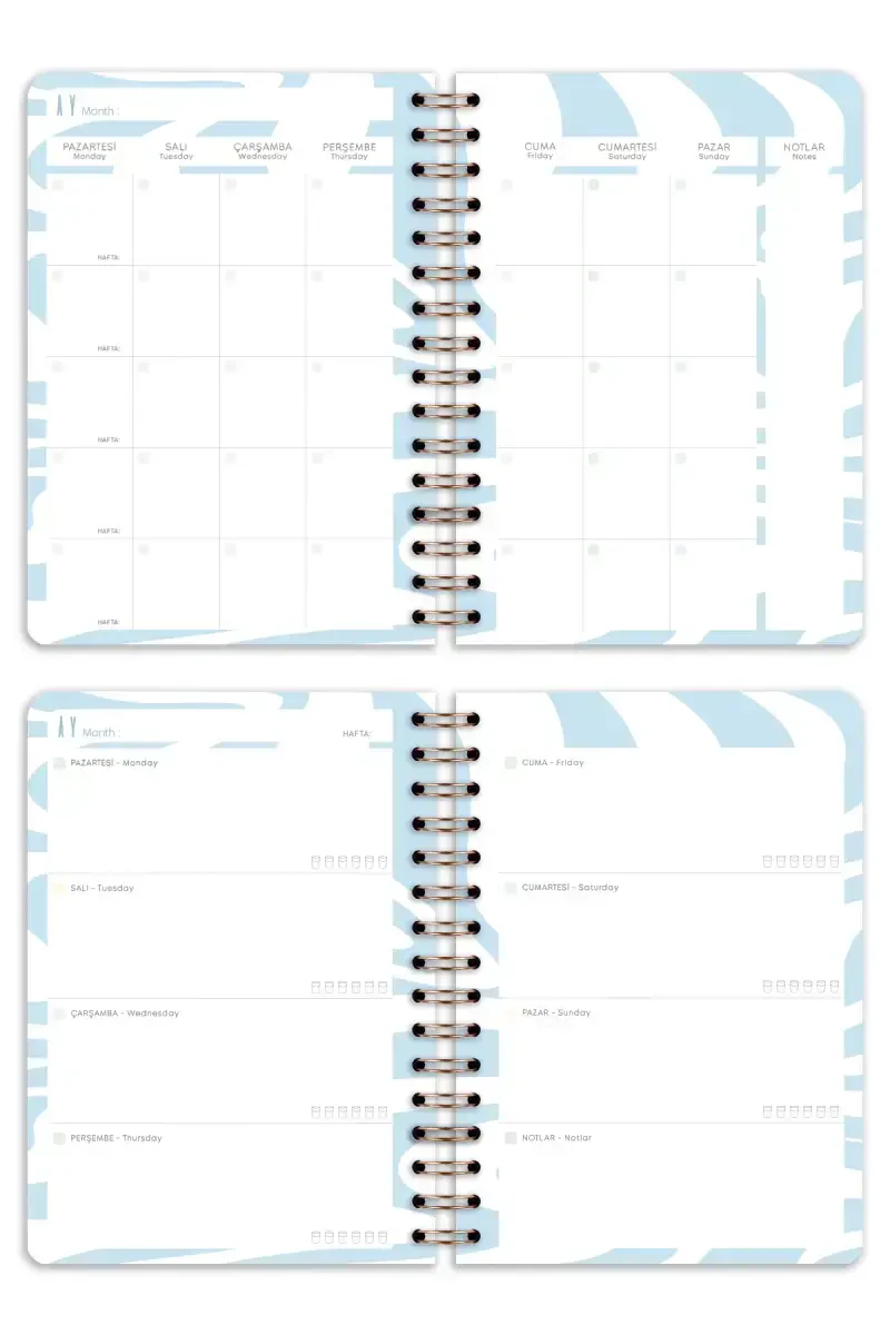 A5 spiralli muddatsiz rejalashtiruvchi kundalik, vaqtni boshqarish va motivatsiyani eng yuqori darajada ushlab turishni istaganlar uchun ideal vositadir. Ushbu maxsus dizayndagi kundalik Matt Notebook sifati bilan taqdim etiladi va rejalashtirish jarayonini yanada qiziqarli va samarali qilish uchun ehtiyotkorlik bilan tayyorlangan. Kamalak ranglaridagi yorqin va serg'ayrat dizayni bilan ajralib turadigan ushbu kundalik, muddatsiz tuzilishi bilan yilning istalgan vaqtida foydalanishni boshlash erkinligini taqdim etadi. Talaba bo'lasizmi yoki professional, ushbu kundalik tufayli maqsadlaringizga erishish, odatlaringizni kuzatish va kundalik ishlaringizni tartibga solish ancha oson bo'ladi.Kundalikning ichki tuzilishi foydalanuvchilarning ehtiyojlarini hisobga olgan holda ishlab chiqilgan. Oylik va haftalik rejalashtirish bo'limlari maqsadlaringizni batafsil belgilashingiz va qadamlaringizni kuzatishingizga yordam beradi, maxsus ishlab chiqilgan motivatsiya sahifalari esa sizni ilhomlantiradi va energiyangizni yuqori tutadi. Har oyda o'zgarib turadigan ilhomlantiruvchi iqtiboslar va turli xil tarkib bilan boyitilgan ushbu sahifalar, rejalashtirish jarayonini nafaqat tashkil etish, balki shaxsiy rivojlanishingiz uchun ham imkoniyatga aylantiradi.A5 spiralli muddatsiz rejalashtiruvchi kundalik, shunchaki rejalashtiruvchi emas, balki motivatsiya manbaidir. Ichidagi maxsus bo'limlar tufayli siz ko'rmoqchi bo'lgan filmlar, o'qimoqchi bo'lgan kitoblar, sayohat qilmoqchi bo'lgan joylarni yozib olishingiz va ushbu maqsadlaringizga erishish uchun aniq qadamlar qo'yishingiz mumkin. Kundalik ichidagi nuqtali sahifalar erkin rejalashtirish va ijodiy eslatmalar uchun ideal, shuning uchun siz o'z fikrlaringizni erkin ifoda etishingiz va loyihalaringizni vizualizatsiya qilishingiz mumkin.Yuqori sifatli 90 gr. 1-xomur qog'ozdan foydalanib ishlab chiqarilgan ushbu kundalik, siyoh tarqalishining oldini olib, qulay yozuv tajribasini taqdim etadi. Spiralli tuzilishi tufayli siz sahifalarni osongina aylantirishingiz va kerakli sahifaga tezda etib borishingiz mumkin. Bundan tashqari, kundalikning orqa qismida joylashgan ikki tomonlama cho'ntak, hujjatlar, kartalar va kichik eslatmalaringizni xavfsiz saqlash uchun mo'ljallangan.A5 spiralli muddatsiz rejalashtiruvchi kundalik, nafaqat funktsional, balki estetik mahsulotdir. Rangli va zamonaviy ichki dizayni rejalashtirish jarayonini yanada qiziqarli qiladi, zamonaviy va ko'zni qamashtiruvchi tashqi dizayni esa o'z uslubingizni aks ettirishga imkon beradi. Ikkita stiker sahifasi kundaligingizni shaxsiylashtirish va muhim sanalarni belgilash uchun sizga qo'shimcha imkoniyat beradi. Ushbu kundalik hayotingizni tartibga solish, maqsadlaringizga erishish va motivatsiyangizni yuqori ushlab turish uchun zarur bo'lgan hamma narsani birlashtiradi.