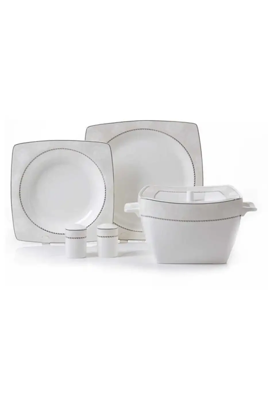The A8442 Bone Sel. 60 Piece Square Dinner Set, with its elegant and modern design, will add a touch of elegance to your table. It is ideal for 12 people. Made of durable and stylish bone porcelain, this set is suitable for everyday use as well as providing a stunning presentation at your special events.