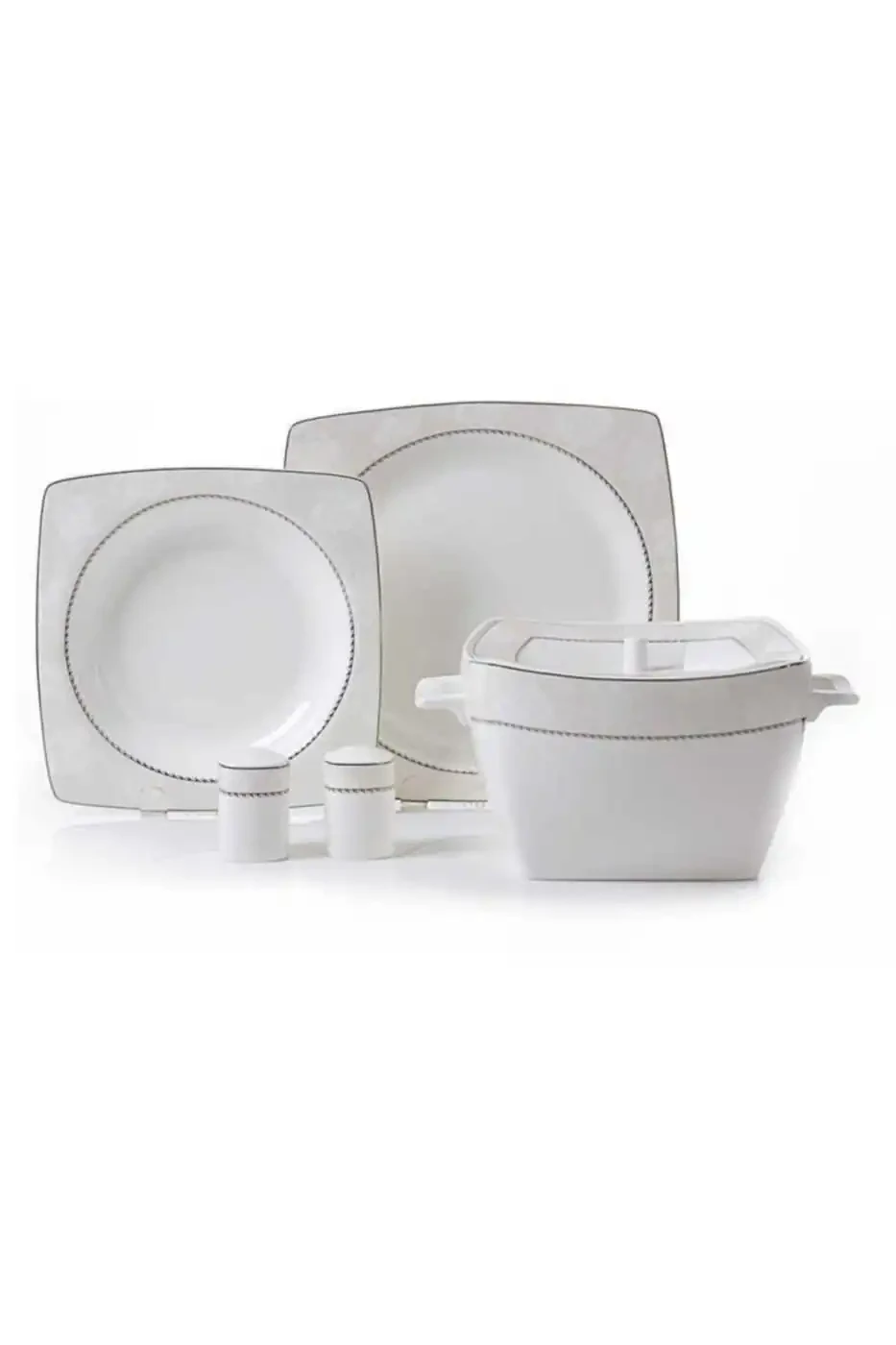 ovqat to'plami, suyak chinisi, 60 dona, kvadrat, oq, nafis, chidamli, idish yuvish mashinasi, mikroto'lqinli pech, ovqat taxtasi, sho'rva taxtasi, pirog taxtasi, choy finjani, choy taxtasi