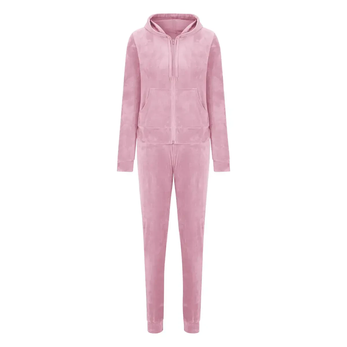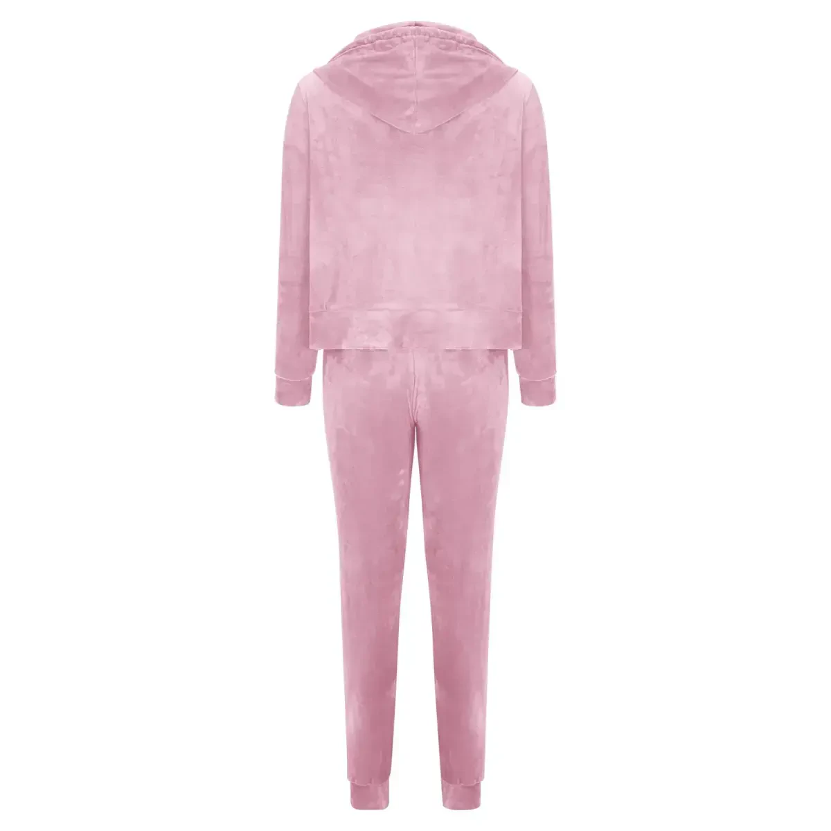 Women's Tracksuit Set: Comfortable Velvet, Hooded, Zippered, High Waist