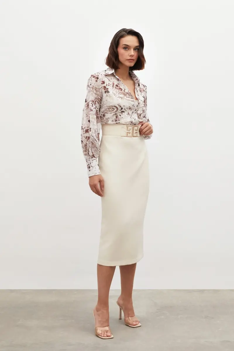 Accessory Detailed Pencil Skirt - BEIGE-BEIGE is a must-have piece in the wardrobe of modern and elegant women. The timeless elegance of beige and the feminine stance of the pencil skirt cut make this skirt wearable in any environment. Whether you combine it with a stylish blouse in the office or complete it with an elegant top for dinner, you will make your style speak in any case. The fabric of the skirt is specially selected to make you feel comfortable all day long. With its structure that does not restrict your freedom of movement, it accompanies you in your busy schedule. Accessory details add a different air to the skirt, offering a unique look away from the ordinary. These details make the skirt more special and eye-catching, while also easily adapting to your combinations. Accessory Detailed Pencil Skirt - BEIGE-BEIGE is not just a skirt, but also a form of expression that reflects your style. You can choose this skirt whenever you want to feel special and make a difference with your elegance. The beige color of the skirt can be easily combined with tops in different colors and patterns, so you can create many different styles compatible with other pieces in your wardrobe. Accessory Detailed Pencil Skirt - BEIGE-BEIGE meets the needs of the modern woman by offering both elegance and comfort together. You should definitely try this skirt to reflect your own style and attract attention in any environment.