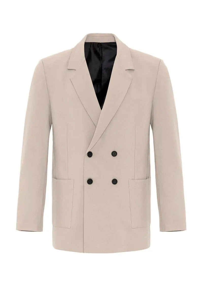 Açık Bej Torba Cepli Kruvaze Erkek Blazer Ceket-Açık Bej