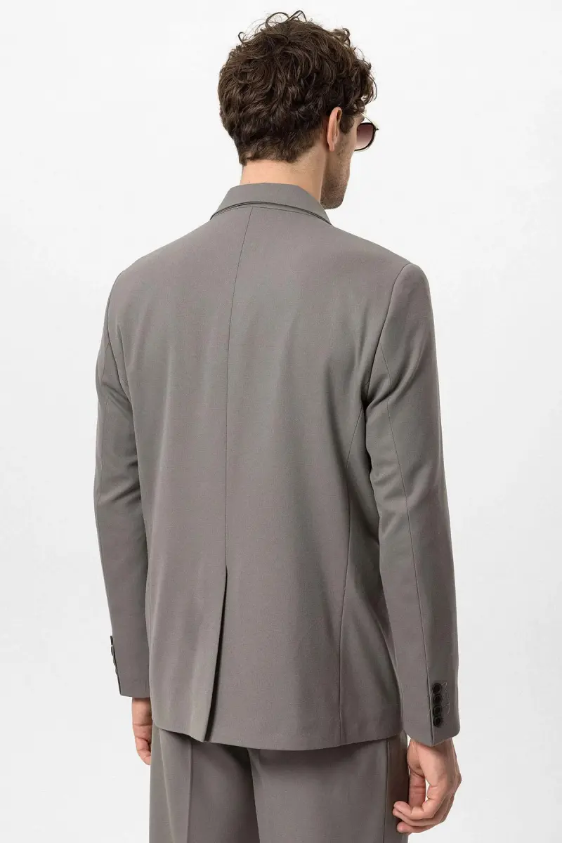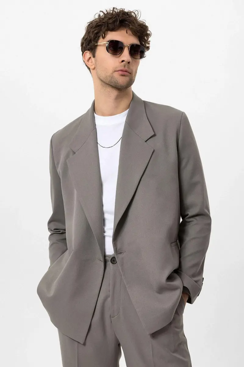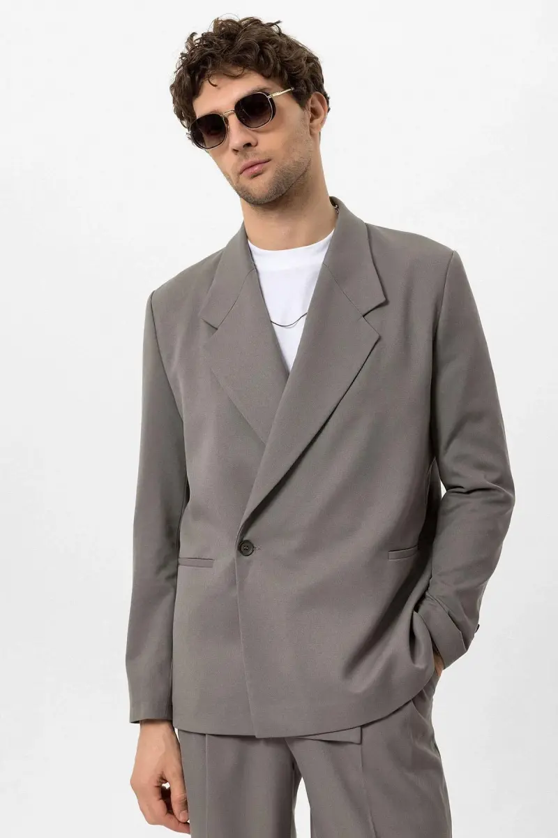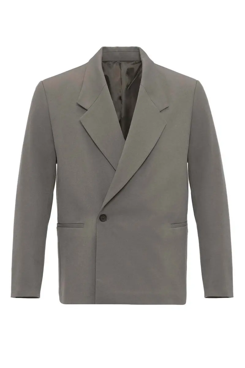 Açık Haki Kruvaze Kapama Fleto Cepli Erkek Blazer Ceket-Açık Haki
