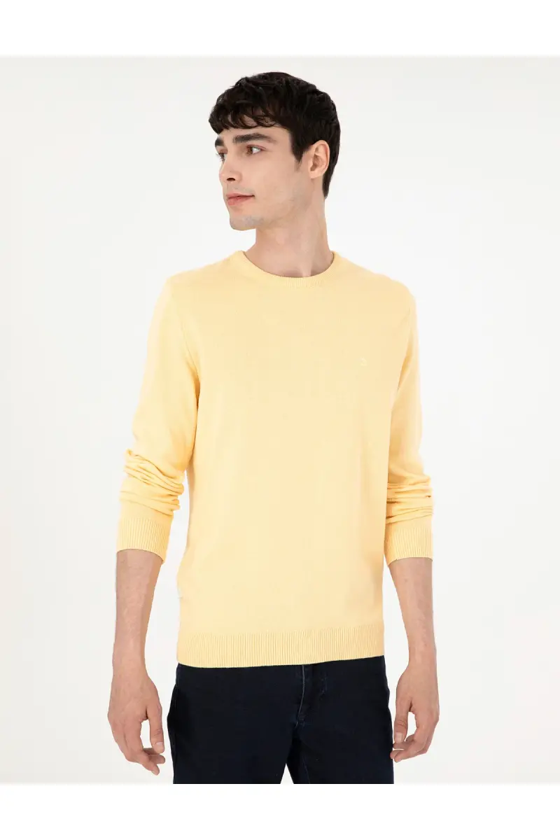 Açık Sarı Slim Fit Bisiklet Yaka Basic Triko Kazak 50296575-VR004-Açık Sarı