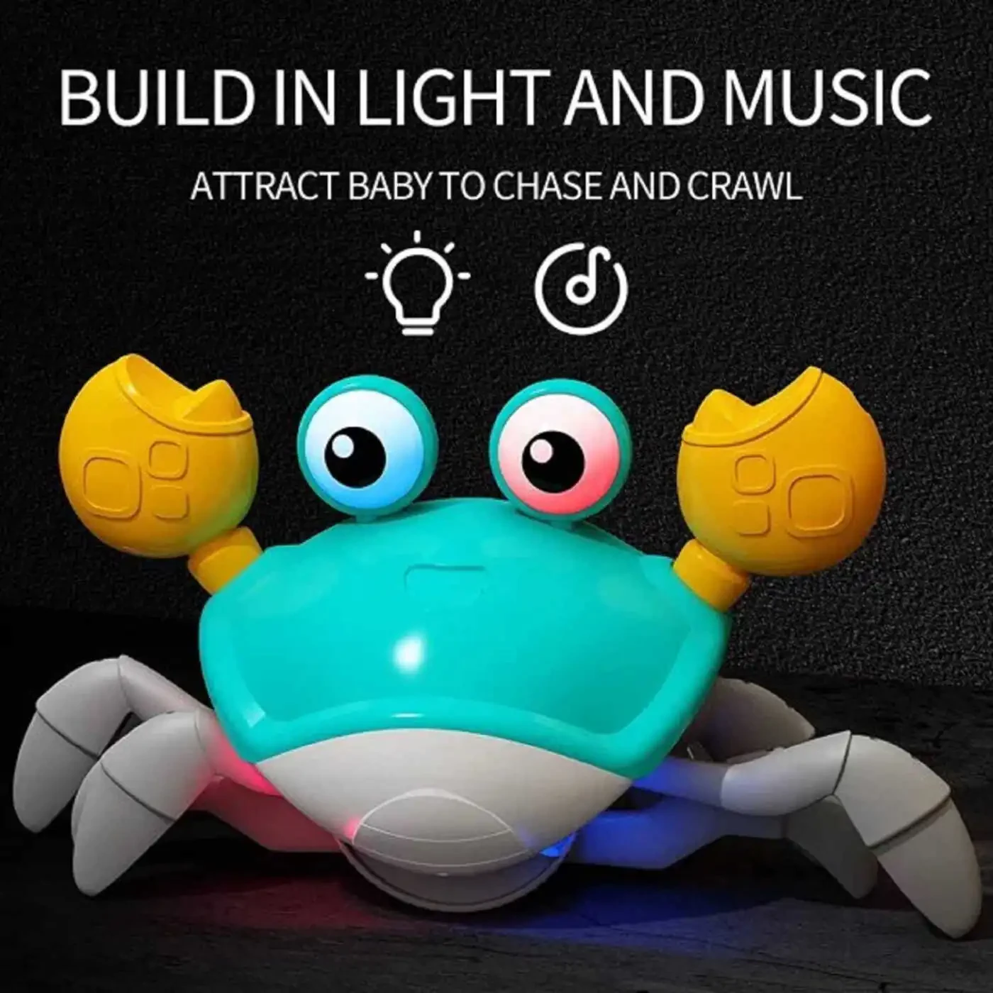 This product is designed to accompany your baby on their development journey. It typically operates with a rechargeable battery system (charging before first use is recommended). Battery type and charging time are specified in the product manual. To ensure the product's longevity, it is recommended not to drop it on hard surfaces and to avoid contact with water. Use a damp cloth for cleaning; avoid chemical cleaners. It is advised to supervise your baby while they play with the toy. The product package includes the toy crab and a charging cable (may vary by model). Batteries are usually not included in the initial package. This toy helps increase your baby's physical activity by encouraging movement. It also supports the development of cognitive abilities through actions like following the music and focusing on the lights. It is a fun learning tool and a great gift option for children.