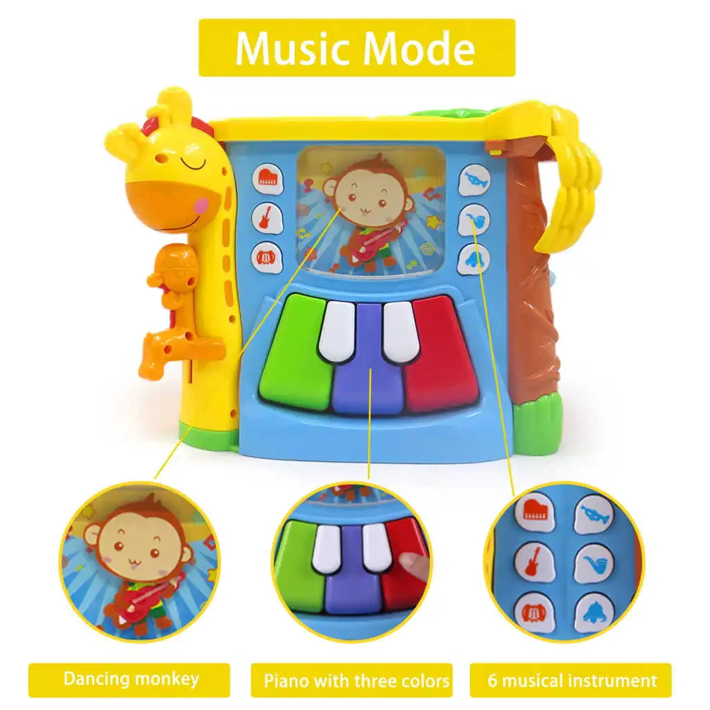Adofi Busy Learners Activity Cube, 5'i 1 arada bebek oyuncakları, 6-12 aylık bebekler ve 1 yaşındaki kız ve erkek çocuklar için Montessori oyuncağıdır. Bu çok yönlü aktivite küpü, bebeğinizin duyusal keşif, motor becerileri ve bilişsel gelişimini teşvik etmek için tasarlanmış beş farklı etkileşimli yüze sahiptir. Her yüz, bebeğinizin meşgul ve eğlendirilmesini sağlayacak benzersiz ve ilgi çekici aktiviteler sunar. Maymun Piyano Yüzü, altı farklı müzik aleti moduna sahip renkli tuşlar, şekil eşleştirme, konuşan sayılar ve renkler, elle çalınan davul ve şarkı söyleyen arı gibi özelliklere sahiptir. Oyuncak ayrıca taşınabilir bir asma, hareketli bir zürafa, sallanan bir maymun, dönen yapraklar ve koparılabilir bir muz içerir. Bu özellikler, bebeğinizin ince motor becerilerini, el-göz koordinasyonunu ve problem çözme yeteneklerini geliştirmeye yardımcı olur. Adofi Busy Learners Activity Cube, bebeğinizin büyümesi ve gelişimi için mükemmel bir oyuncaktır. Eğitici ve eğlencelidir ve bebeğinizin saatlerce eğlenmesini sağlayacaktır.