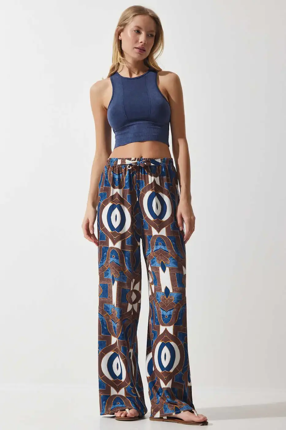 EN00606 моделли замонавий ва қулай аёл кўк-жигарранг нақшли вискозали палаззо шими билан замонавийлик ва қулайликни бирлаштиринг! Trendyol томонидан юборилган бу ажойиб палаззо шим 100 дан ортиқ захирада бўлиб, акция нархида сотилмоқда. Сотувчи томонидан белгиланган нарх, сотувчи рейтинги, етказиб бериш муддати, акциялар, юк харажатлари ва тез етказиб бериш имкониятлари каби омилларга асосан тартибланган. Бу замонавий буюмни гардеробингизга қўшиб, ҳар мавсумда ўз услубингизни тўлдиришингиз мумкин. Кўк ва жигарранг нақшлари билан кўзга ташланадиган услубга эга бўлган шим, ўртача қалинликдаги вискоза матоси билан мавсум ўтишларида идеал танловдир. Узунлиги оёқларингизни ҳақиқийсидан ҳам узунроқ кўрсатиб, сабзи/шалвар силуэти замонавий ва тренд кўриниш беради. Кунингизни яхшилайдиган, кундалик фойдаланиш учун мукаммал танлов бўлган бу палаззо шим рақамли босма техникаси ёрдамида яратилган жонли ва аниқ нақшлари билан диққатни жалб этади. Bizning basic коллекциямизга кирувчи бу шим кенг кесими ва труба шаклидаги дизайни билан ҳам қулай, ҳам замонавий фойдаланишни таъминлайди. Оддий бел баландлиги туфайли ҳам қулайлик, ҳам замонавийлик асосий ўринда туради. 15 кун ичида бепул қайтариш имконияти билан хотиржам харид қилишингиз мумкин. Кўпи билан 10 та буюм буюртма қилиш мумкин, 10 тадан ортиқ буюртмалар Trendyol томонидан бекор қилиниши мумкин. Корпоратив буюртмалар учун бошқа лимитлар амал қилиши мумкин. Бу махсус палаззо шим билан услубингизга замонавий ва қулайлик қўшинг!