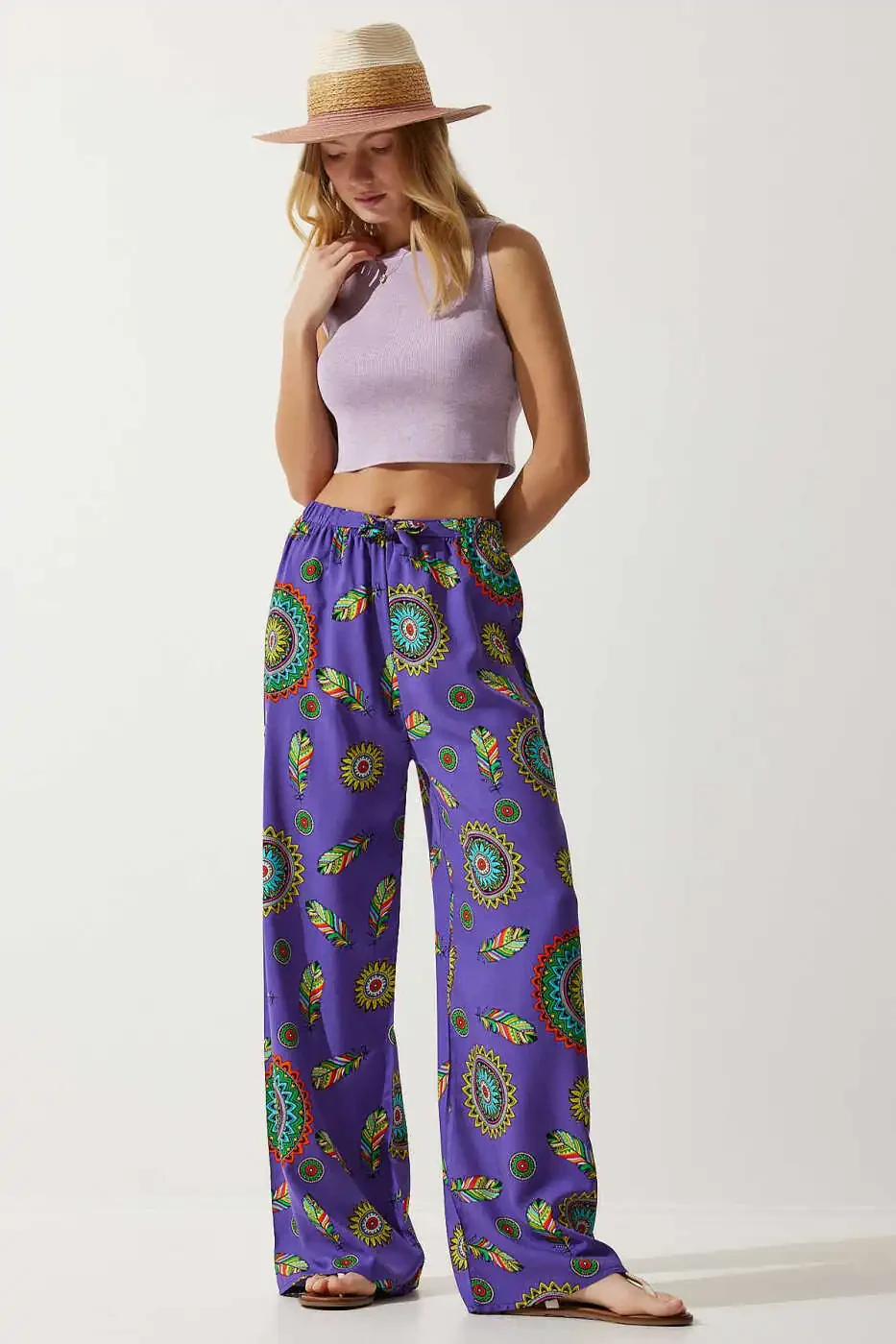 Замонавийлик ва қулайликни бирлаштиришни истаганлар учун ажойиб танлов бўлган EN00606 модельли аёллар учун лило рангли, ёйилма вискозали палаззо шим гардеробингизнинг ажралмас қисмига айланади! Trendyol томонидан жўнатиладиган бу ажойиб шим жонли ва бардошли ранглари билан кўз қомаштиради. 100 дан ортиқ миқдордаги захира билан акция нархида таклиф этилаётган бу маҳсулотни қўлдан бой берманг! Рақамли босма технологияси ёрдамида ишлаб чиқарилган, 100% вискоза матодан тикилган шим юмшоқ тўқимаси ва қулай тузилиши билан кун бўйи қулайликни таъминлайди. Одатдаги бел кесими, сабзи/шалвар силуэти ва узун бўйи дизайн билан ҳам замонавий, ҳам қулай кўриниш беради. Оёқ бўйини узунроқ кўрсатадиган дизайни ва труба шаклидаги пошна кесими билан замонавий ва нафис кўриниш яратишга ёрдам беради, ўртача қалинликдаги матоси эса фасллар ўзгаришида ҳам идеал қулайликни таъминлайди. Оддий дизайнга эга бўлгани учун ҳар қандай юқори кийим билан осонгина комбинация қилиш мумкин бўлган бу палаззо шим ҳар ёшдаги аёлларга мос келадиган кўп қиррали буюм. Trendyolдан ишонч билан сотиб олишингиз ва 15 кунлик бепул қайтариш имкониятидан фойдаланишингиз мумкин. Пойабзалингизни ажратиб кўрсатадиган бу замонавий шим гардеробингизда етишмаётган нарса эмас. Сиз ҳам бу қулайлик ва замонавийликни ҳис этинг!