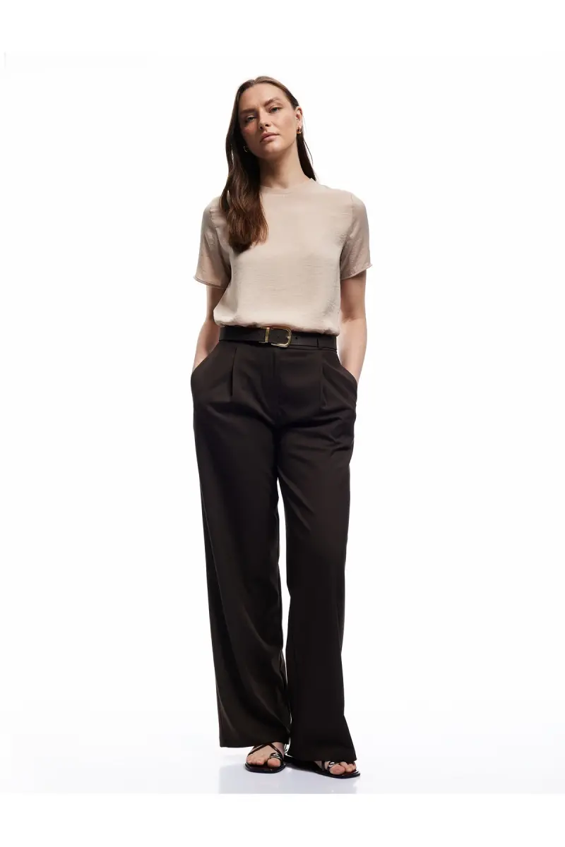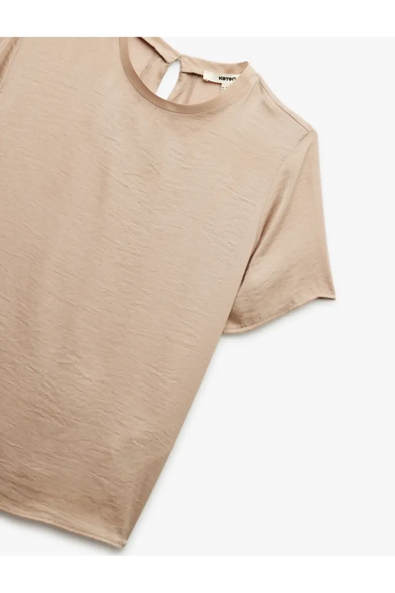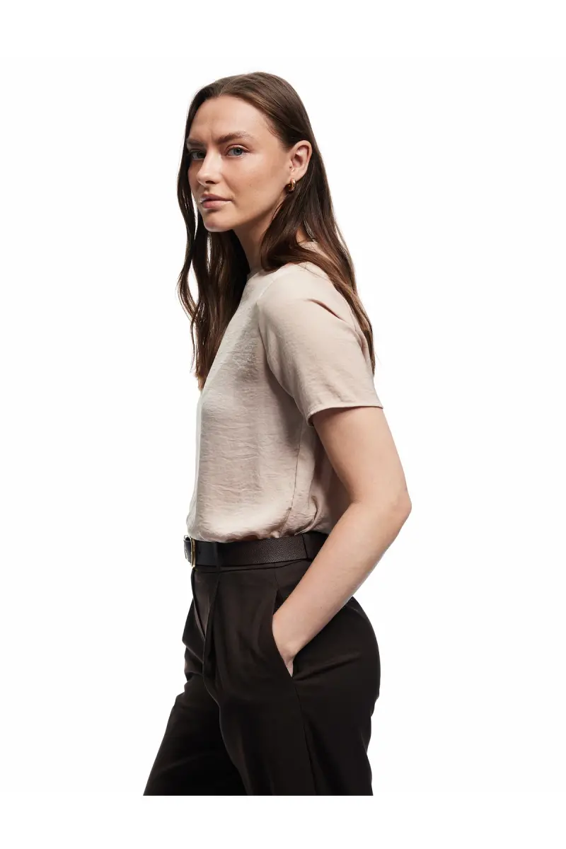 Aerobin Kumaş Kısa Kollu Bisiklet Yaka Saten Bluz-Ekru
