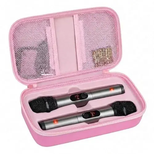 Perfect for Wireless Microphones Case: Specifically designed for JBL wireless two microphone system, dual microphone storage bag offers separate spaces for two microphones, AA batteries, and data cables. Wireless microphones for karaoke box is perfect for musicians, speakers, and music-lovers who need to protect their gear when they're on the move. Note: only a cover, don't include other accessories. External dimensions: 11*6*3.25 inch. Thoughtful Design for JBL Wireless Mics Organizer: Fixed internal support design ensures a secure and precise fit for bluetooth microphone wireless, providing protection during transportation. Convenient groove design allows for easy and comfortable access. This feature is particularly beneficial for traveling performers and on-the-go professionals. Portable Cordless Microphones Box: Carrying bag for jbl karaoke machine with 2 microphones includes two mesh pockets, each fastened with magic tape for secure storage of wireless receivers, adapters, AA batteries, and data cables, and other accessories. This design is particularly useful for individuals needing to carry additional equipment for extended use, such as event organizers and sound technicians. Easy to Carry Handheld Microphone Dual Mic Cover: Featuring a handle and made from long-lasting materials, dual wireless microphone container is easy to transport and ensures longevity. Cordless mic pouch is suitable for both professional use at events and leisure use at home, catering to a diverse range of users, seeking an organized and reliable solution. Practical Gift of Two Wireless Mic System Microphones Holder: Pouch for microphone for singing is compact, sturdy and lightweight, an absolute pleasure to carry and store. Sturdy and smooth zipper ensures quick and effortless access whenever needed. Wireless microphones & systems travel case is suitable for personal use, making it an excellent gift for family and friends who enjoy music.
