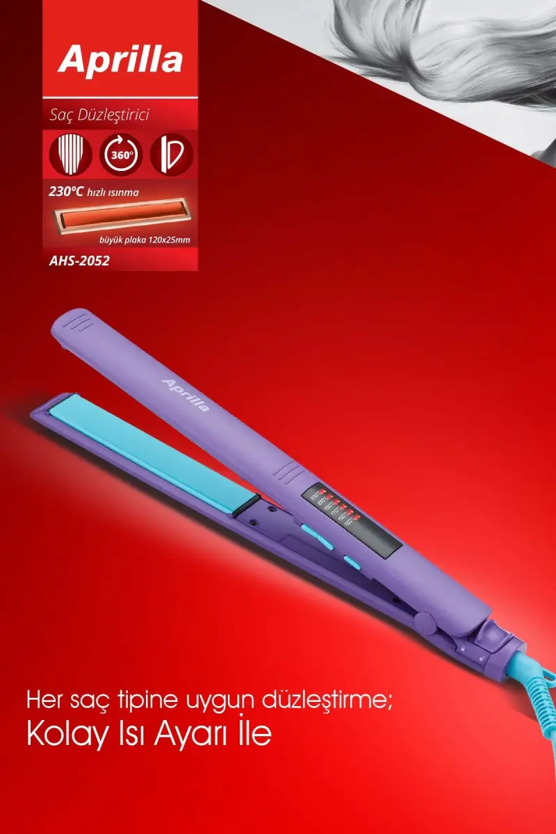 Bu ürün indirgetir tarafından gönderilecektir.Kampanya fiyatından satılmak üzere 100 adetten fazla stok sunulmuştur.İncelemiş olduğunuz ürünün satış fiyatını satıcı belirlemektedir.Bir ürün, birden fazla satıcı tarafından satılabilir. Birden fazla satıcı tarafından satışa sunulan ürünlerin satıcıları ürün için belirledikleri fiyata, satıcı puanlarına, teslimat statülerine, ürünlerdeki promosyonlara, kargonun bedava olup olmamasına ve ürünlerin hızlı teslimat ile teslim edilip edilememesine, ürünlerin stok ve kategorileri bilgilerine göre sıralanmaktadır.Bu üründen en fazla 5 adet sipariş verilebilir. 5 adedin üzerindeki siparişleri Trendyol iptal etme hakkını saklı tutar. Belirlenen bu limit kurumsal siparişlerde geçerli olmayıp, kurumsal siparişler için farklı limitler belirlenebilmektedir.15 gün içinde ücretsiz iade. Detaylı bilgi için [page="return_conditions"]tıklayın .Ahs 2052 Dijital Isı Ayarlı Profesyonel Saç Düzleştirici Mor AHS-2052 Büyük tip seramik kaplı PTC ısıtıcı plakalar (25x120mm).130-230°C sıcaklık seçimi için LED göstergesi.Hızlı sıcaklıkta.Açma/kapamadüğmesine basın.360° dönebilen güç kablosu ve asma zinciri.Seyahat içinkilitleme düğmesi.