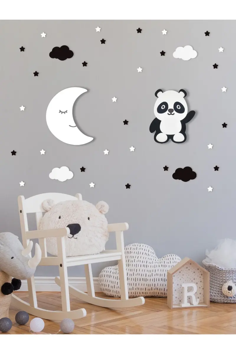 Çocuklarınızın hayal dünyasını aydınlatacak, odalarına sevgi dolu bir dokunuş katacak Ahşap Ay ve Panda Figürlü Bebek ve Çocuk Odası Dekoratif Ledli Aydınlatma/Gece Lambası 2'li Set ile tanışın! UniQraft Design'ın özenle tasarladığı bu set, miniklerin odasını masalsı bir atmosfere büründürmek için ideal. Set içeriğindeki sevimli ay ve panda figürleri, hem gece lambası olarak kullanılabilecek hem de gündüzleri odanın dekorasyonuna şıklık katacak. Yüksek kaliteli malzemelerden üretilmiş olan bu aydınlatma seti, çocuklarınızın sağlığına zarar verecek herhangi bir madde içermez. Beyaz led ışıklar, göz yormayan yumuşak bir aydınlatma sağlayarak, çocuklarınızın rahat bir uykuya dalmasına yardımcı olur. Setin içerisinde bulunan 30 adet ahşap yıldız ve 4 adet ahşap bulut ise, odanın duvarlarını dilediğiniz gibi süsleyebilmeniz için tasarlandı. Çift taraflı bant sayesinde kolayca monte edilebilen bu ahşap figürler, odanın dekorasyonunu kişiselleştirmenize olanak tanır. Ahşap Ay ve Panda Figürlü Bebek ve Çocuk Odası Dekoratif Ledli Aydınlatma/Gece Lambası 2'li Set, sadece bir aydınlatma ürünü değil, aynı zamanda çocuklarınızın hayal gücünü geliştiren, onlara huzurlu ve güvenli bir ortam sunan bir dekorasyon öğesidir. Çocuklarınızın odasını renklendirin, onlara unutulmaz bir hediye verin! Bu benzersiz set, doğum günü, yeni yıl veya herhangi bir özel gün için mükemmel bir seçenektir. Odanın atmosferini değiştirerek, çocuklarınızın keyifli vakit geçirmesini sağlayacak. Dayanıklı yapısı sayesinde uzun yıllar boyunca kullanabileceğiniz bu set, hem sizin hem de çocuklarınız için değerli bir yatırım olacaktır. Şimdi sipariş verin ve çocuklarınızın odasını hayallerindeki gibi dekore etmeye başlayın!