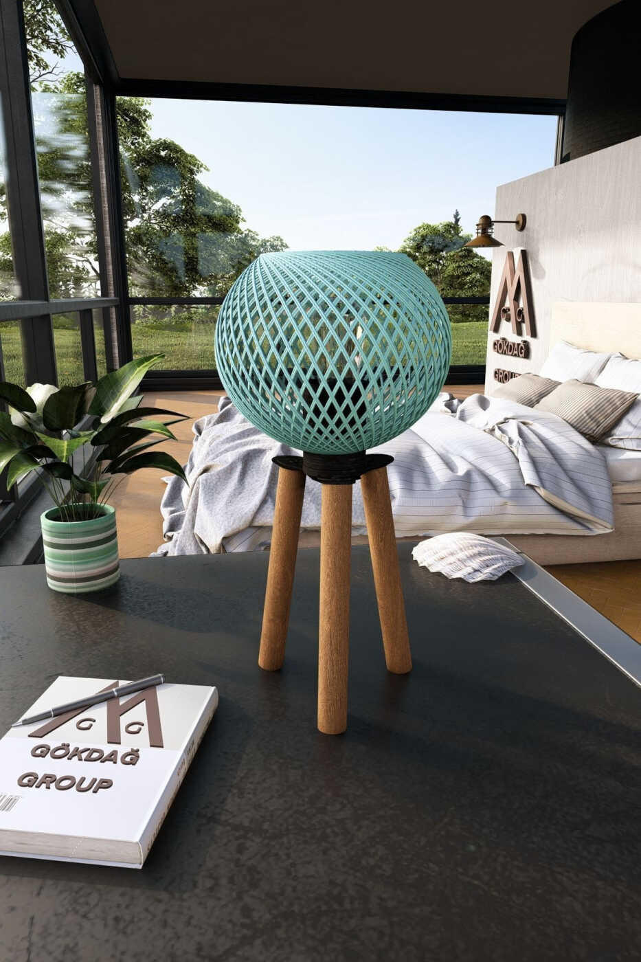 Ahşap Üç Ayaklı Tripod Abajur Camgöbeği Top Başlıklı Aydınlatma-Camgöbeği